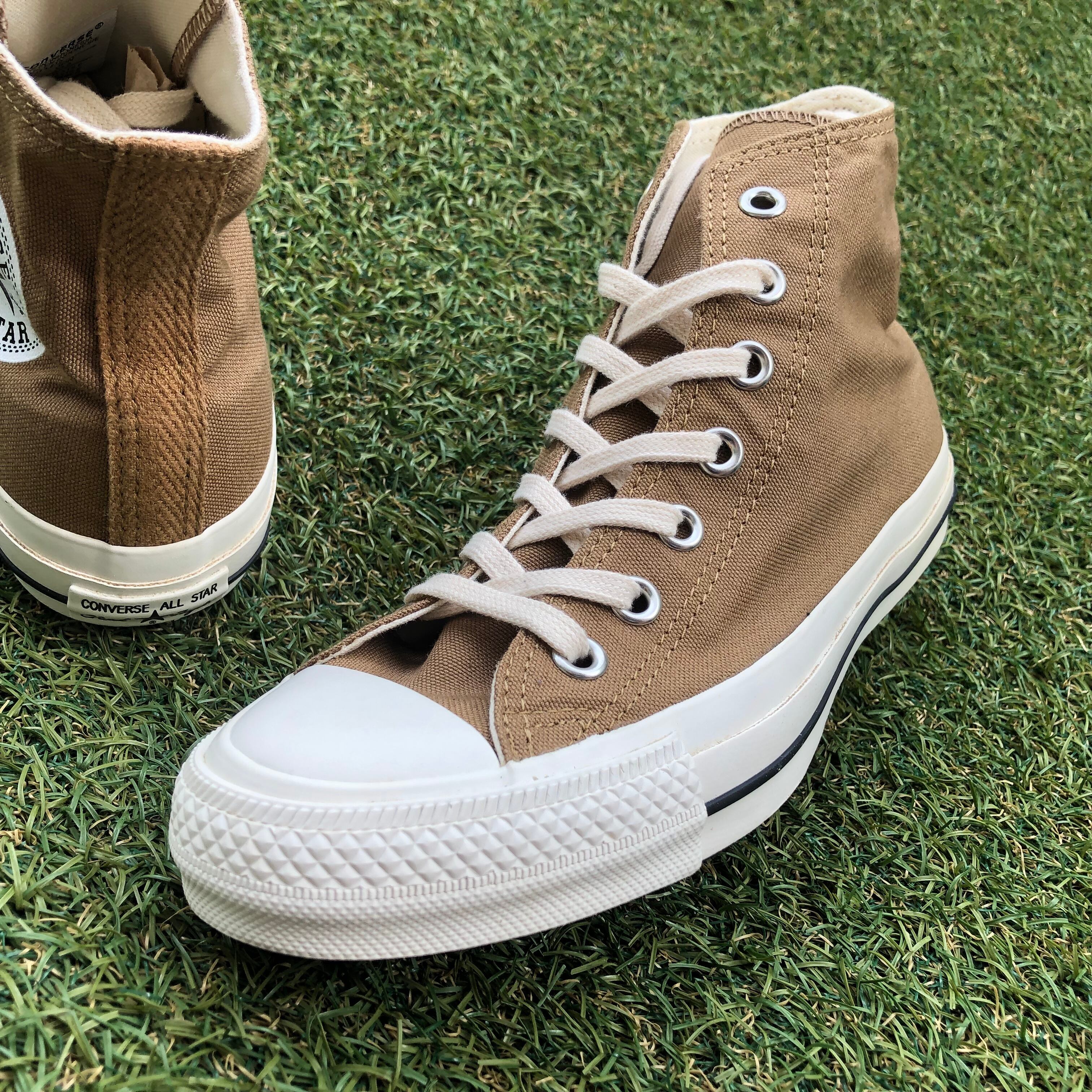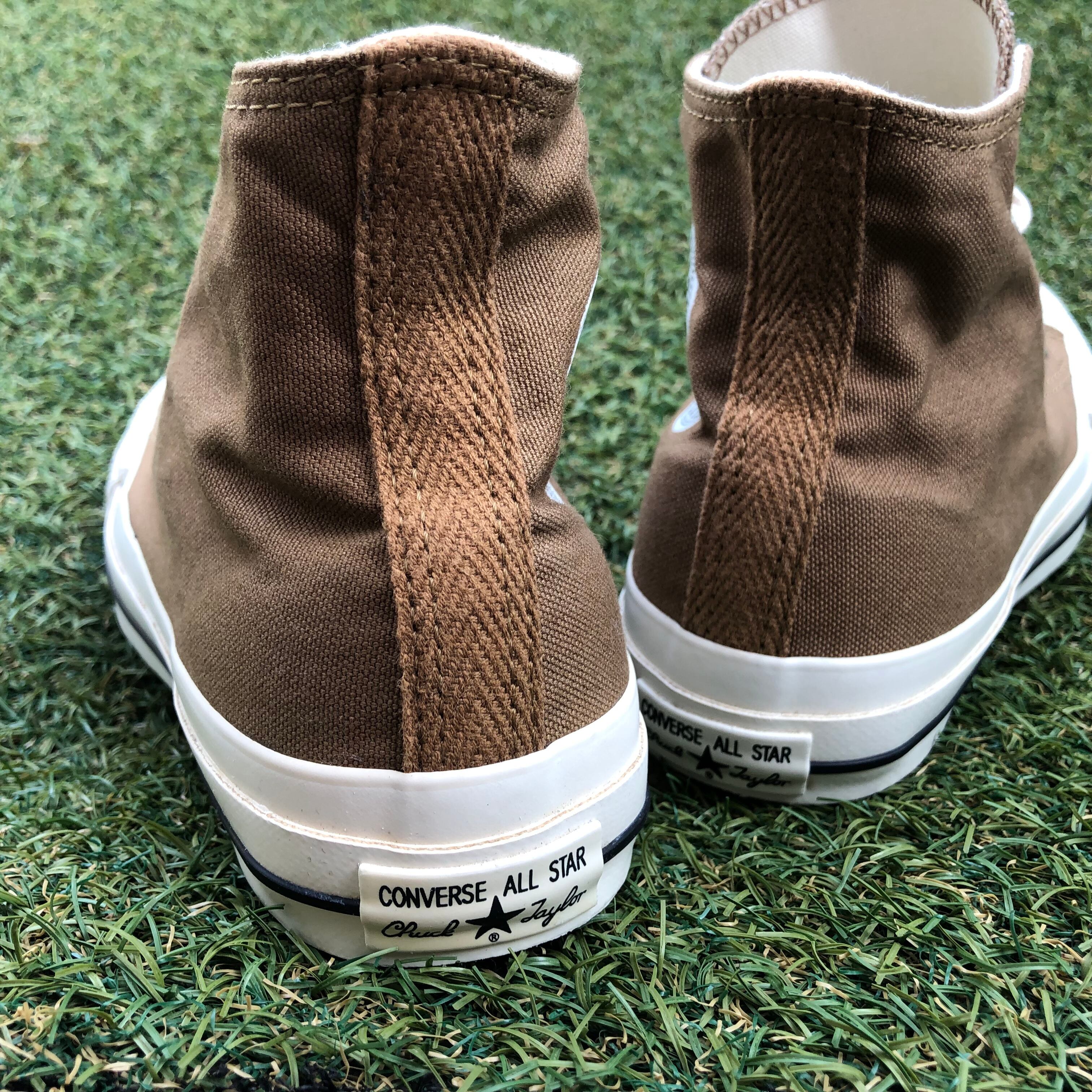 アッパー素材には既存のオールスターよりも若干軽いオンスのキャンバス地を使用しています。カウンター部にはMHLのアイコンであるヘリンボーンテープを施すほか、コットンのシューレースが用いらているスペシャルモデルです!