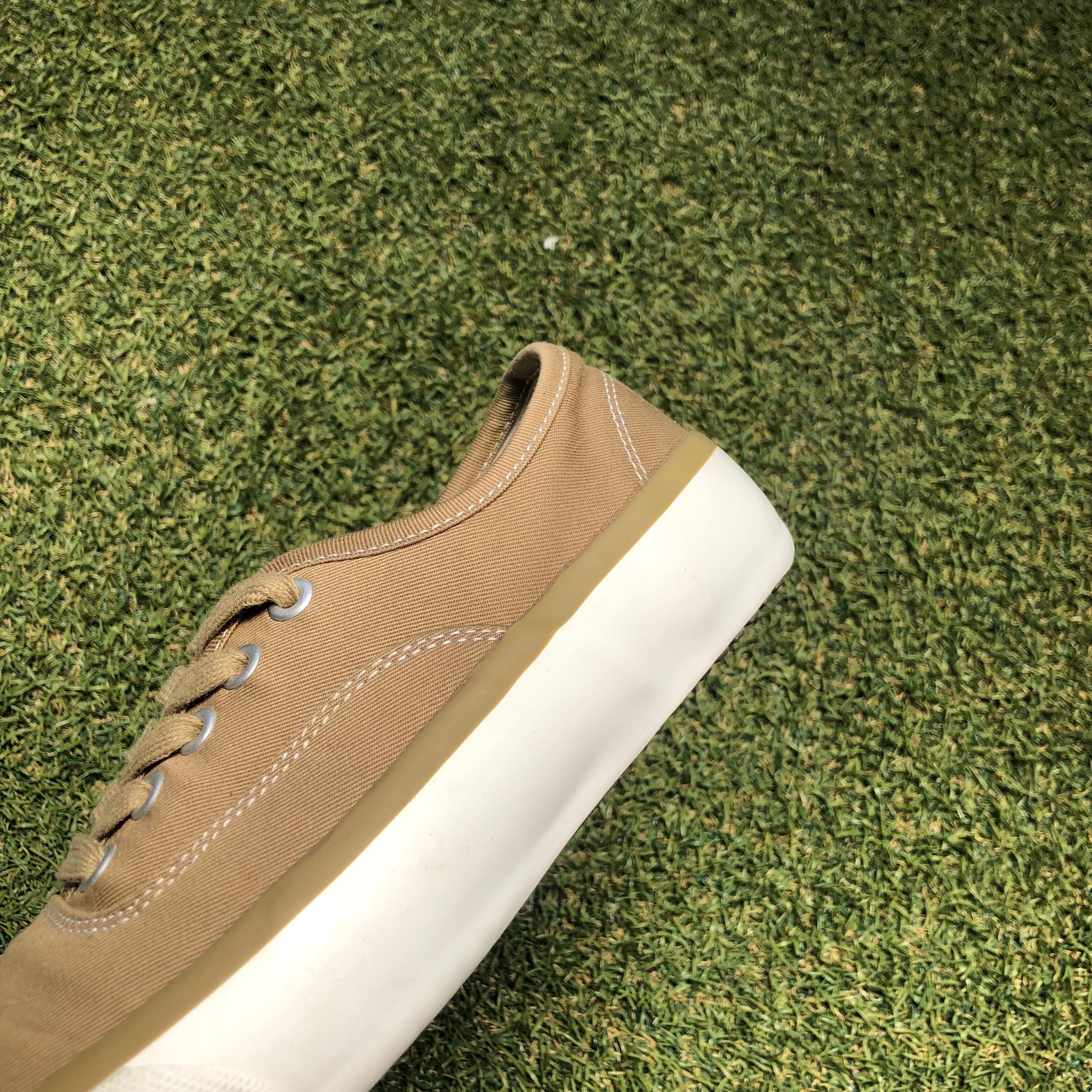 アッパー素材には、高級綿であるフィンクスコットンを贅沢に使用し、ソールは少し嵩高に、加えてアッパー同色のラインが入り(ストライプはソールにラインなし)、シューホールはつや消しのシルバーにすることで、ありそうでなかった拘りの凝縮された1足!