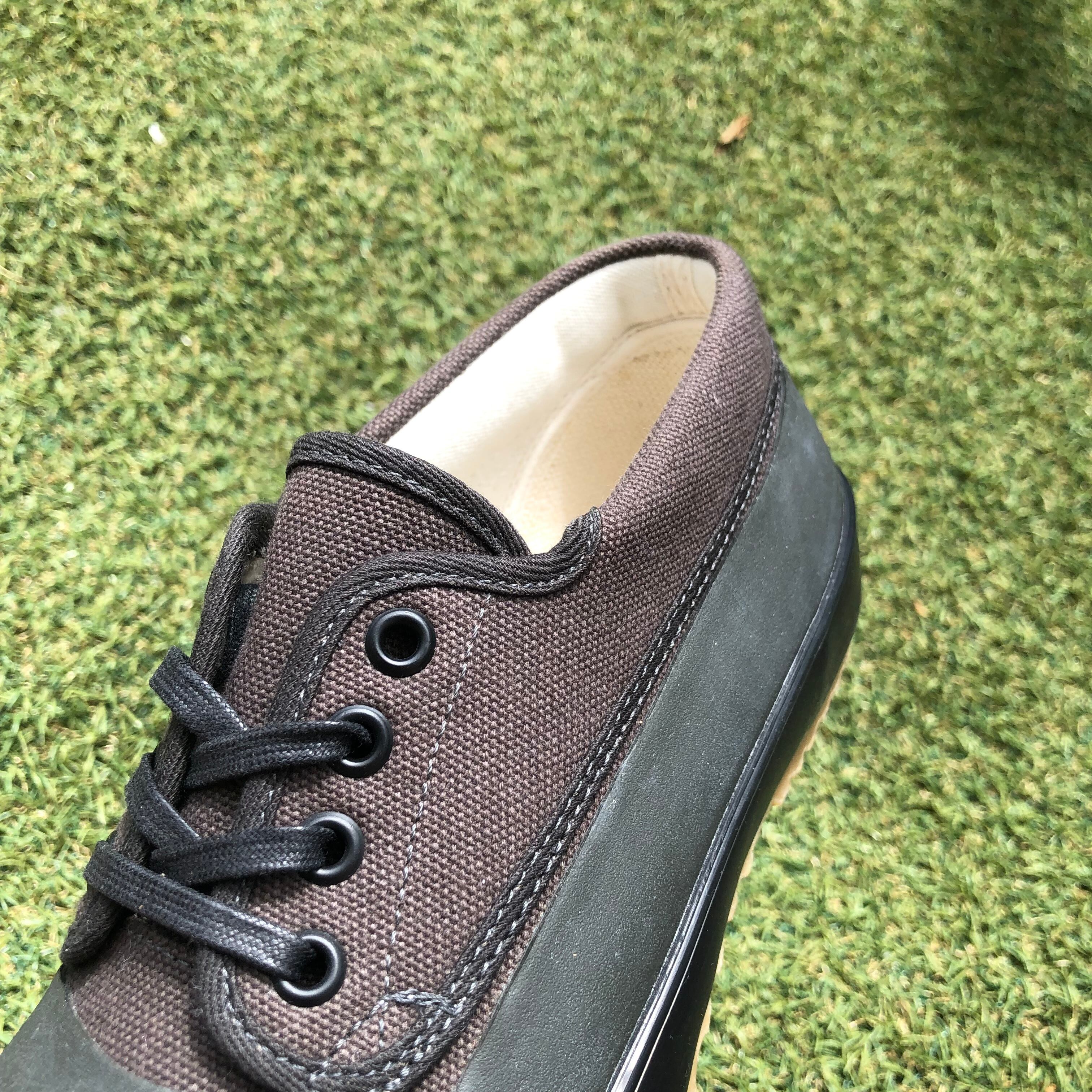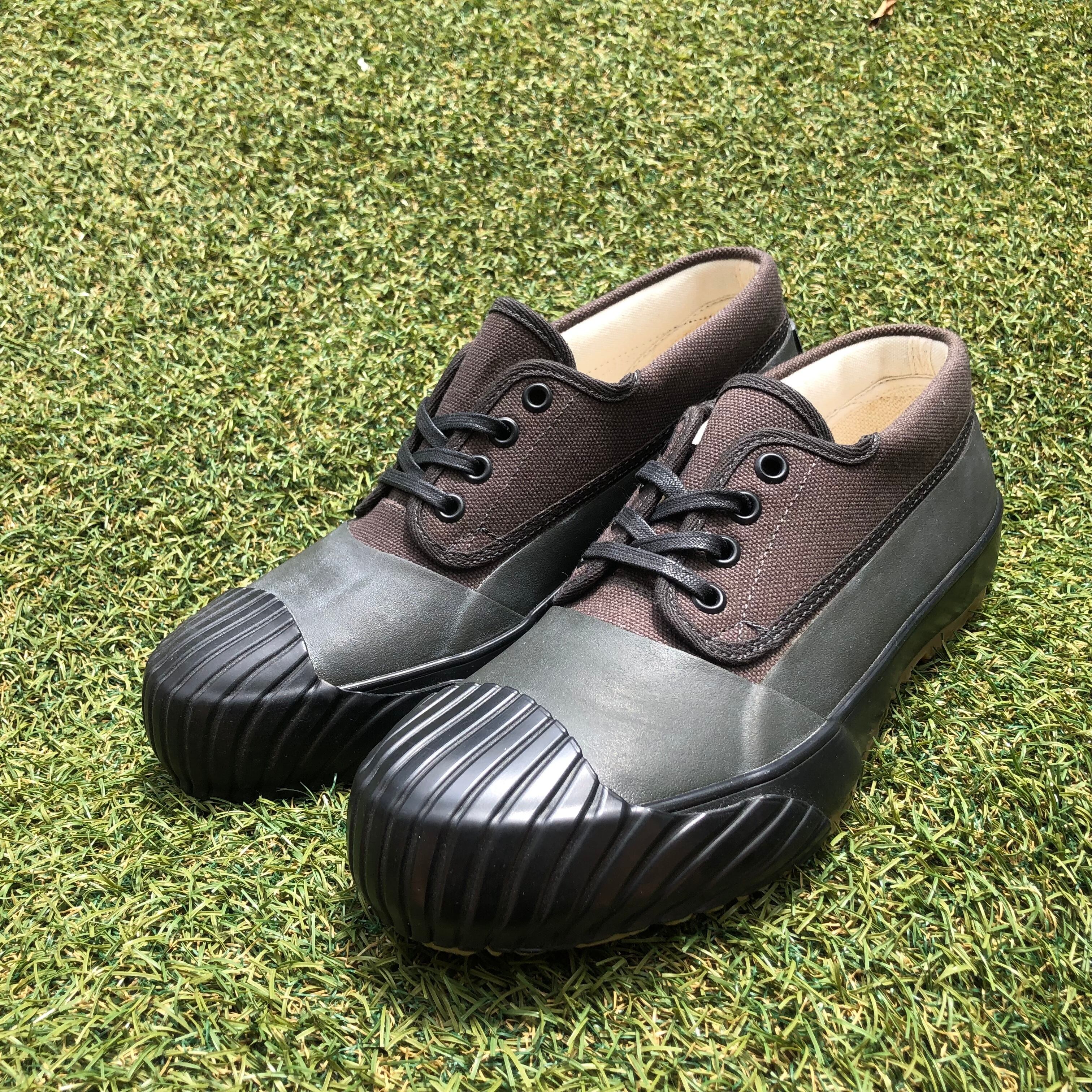 アッパーのキャンバス地にラバーを貼り合わせた全天候型モデルで、雨天時や、野外イベントなど足下の状態が悪い場面でも気にせず履くことができる仕様となっています。