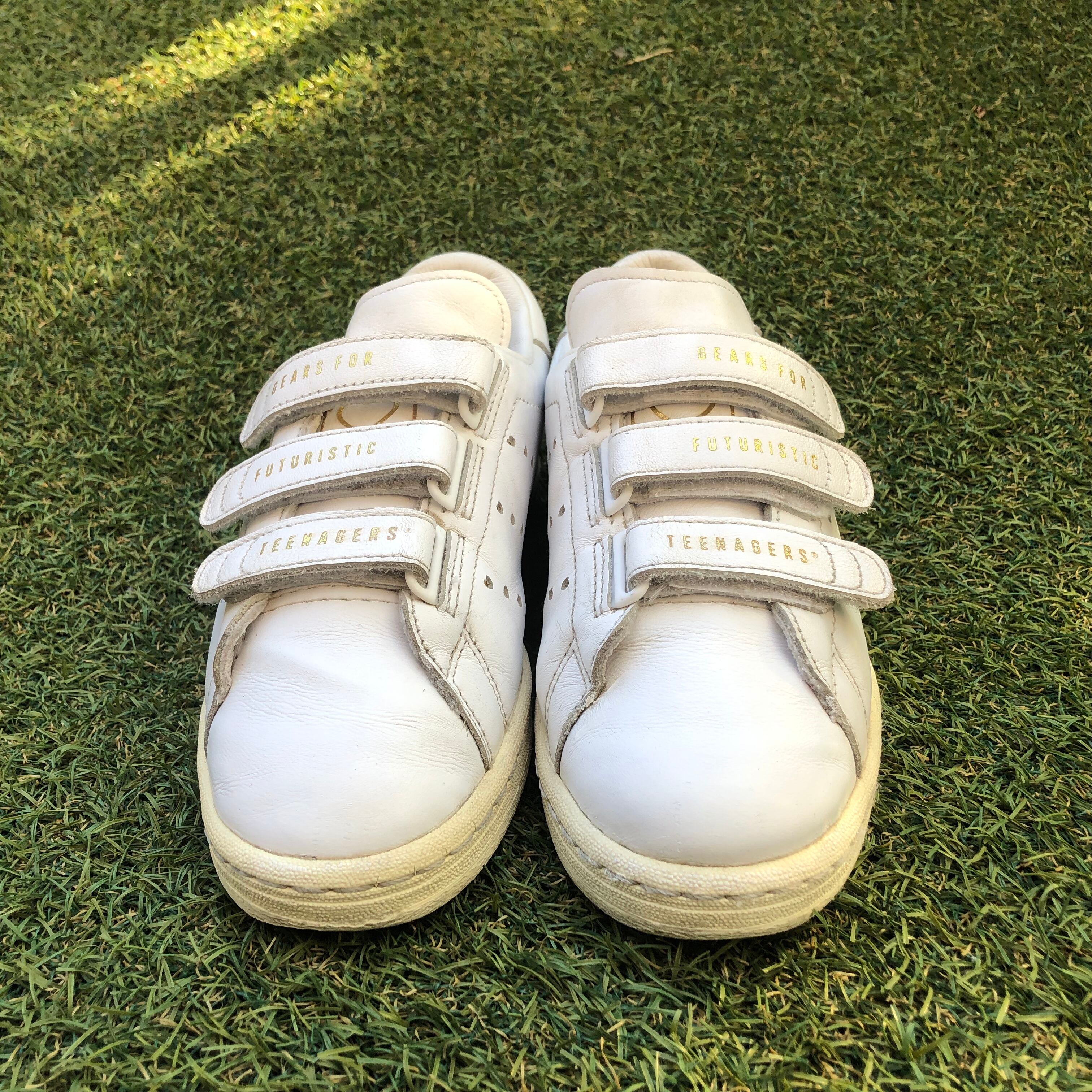 FUTURE IS IN THE PAST(未来は過去の中にある)をテーマに、アディダスのアーカイブ「MASTER」をベースにベルクロにはGEARS FOR、FUTURUSTIC、TEENAGERSとHUMAN MADEのスローガンがそれぞれプリントされています!