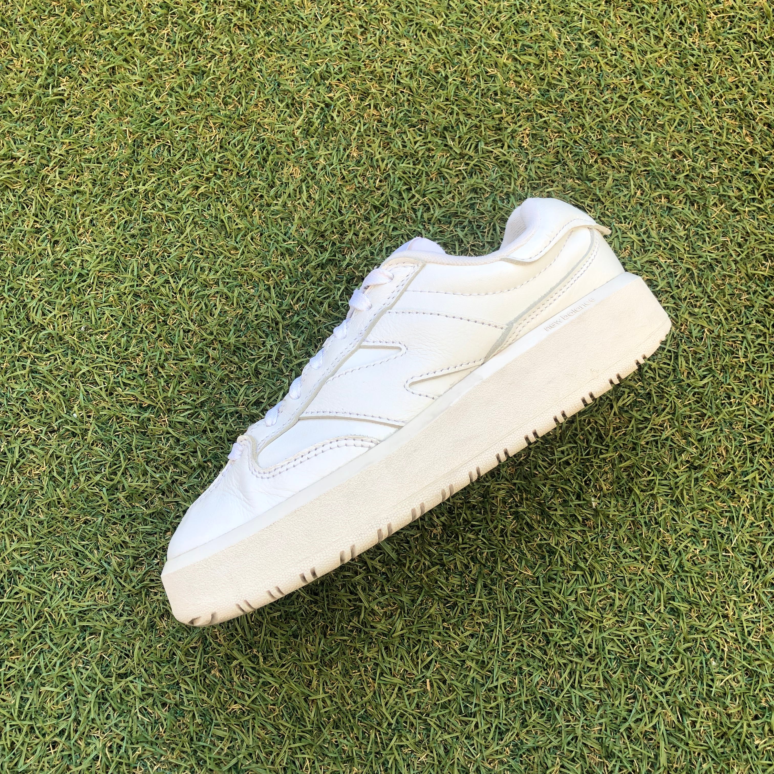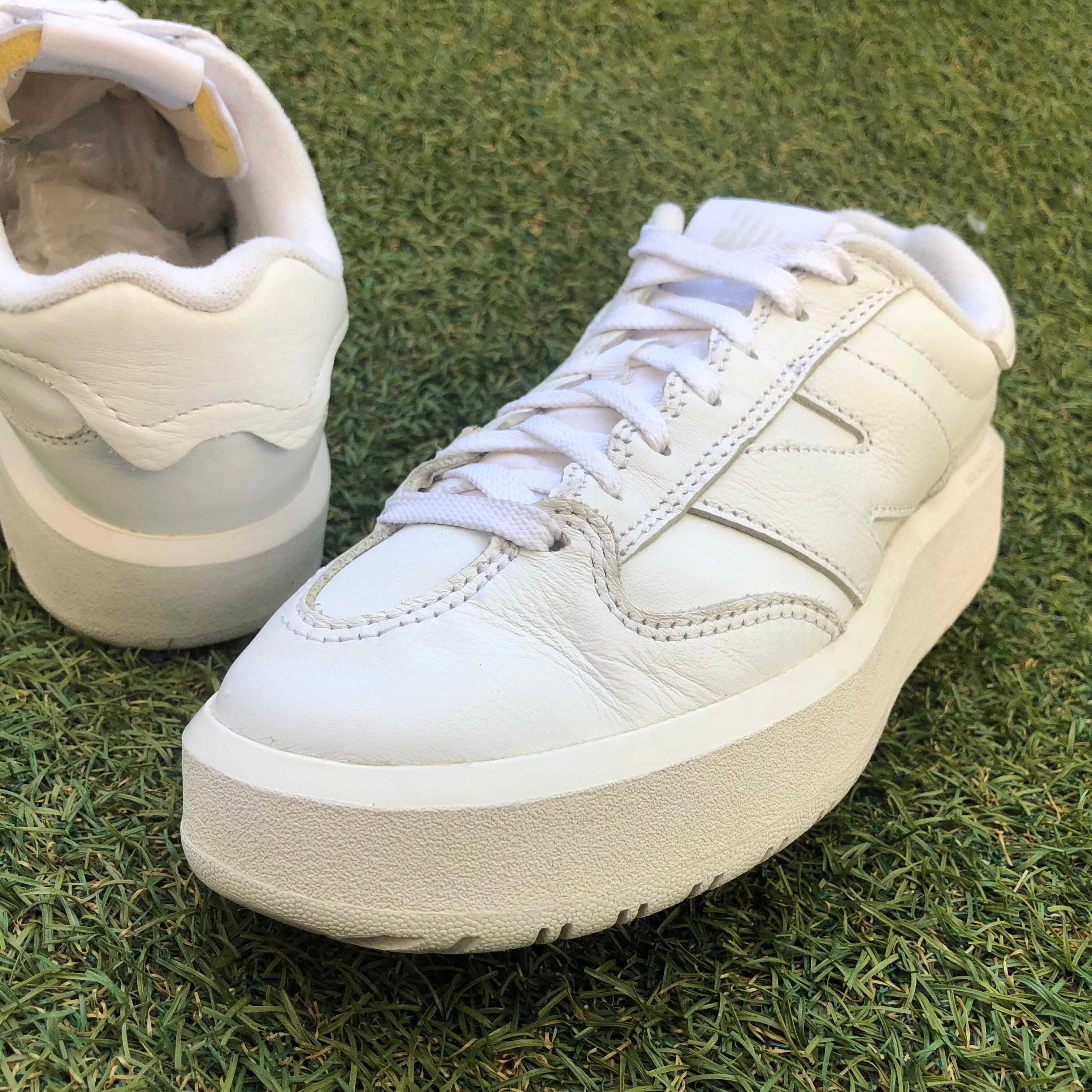 ビッグNサドルが印象的なアッパーを、高級感のあるオールレザーで包み込み、足元をさわやかに彩るホワイトベースでクリーンに仕上げられています!