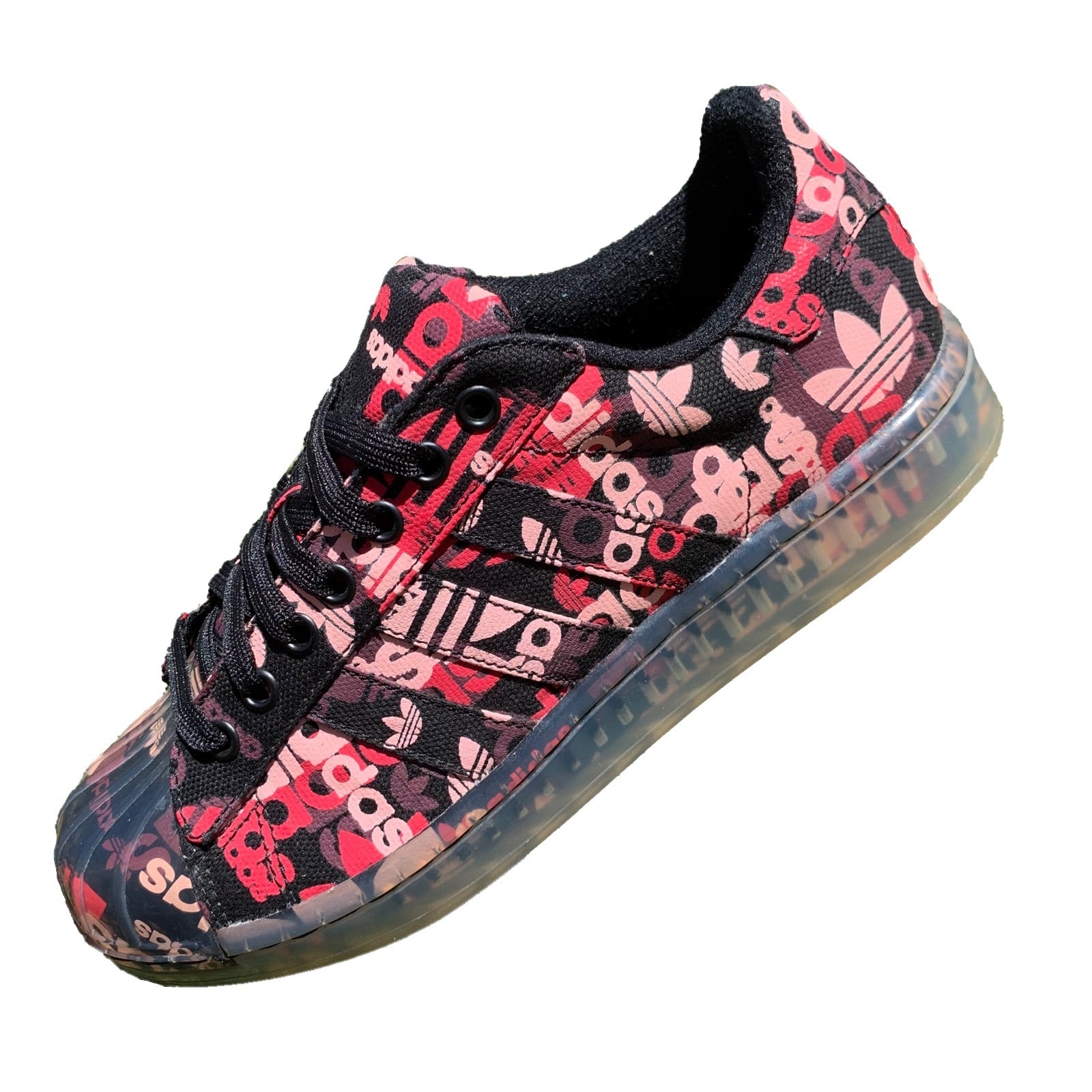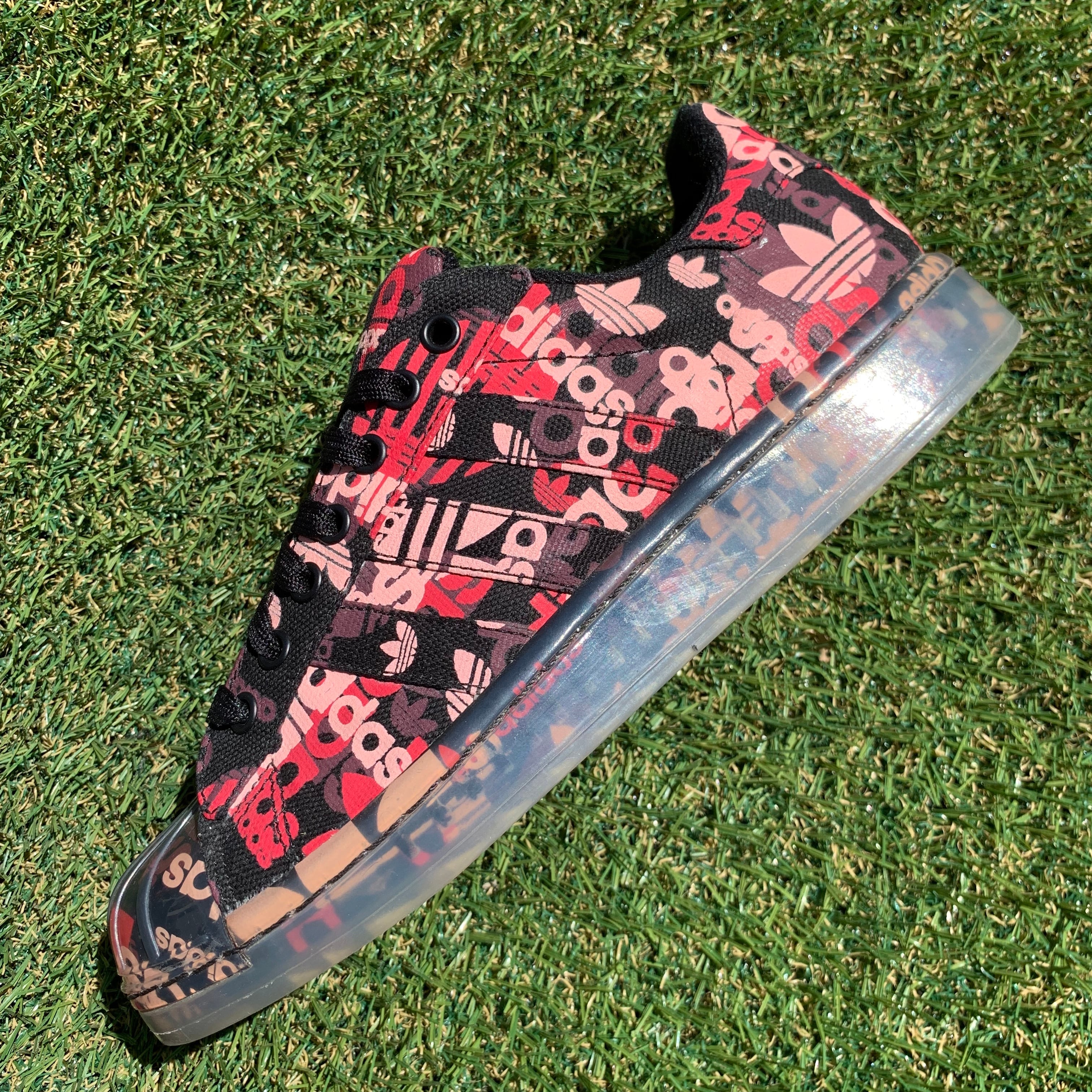 2008年に限定販売されていた、ブラックのキャンバス地にトレフォイルとアディダスのロゴを全体的にプリントし、シェルトゥーとアウトソールにクリアパーツを採用したスペシャルモデルです!