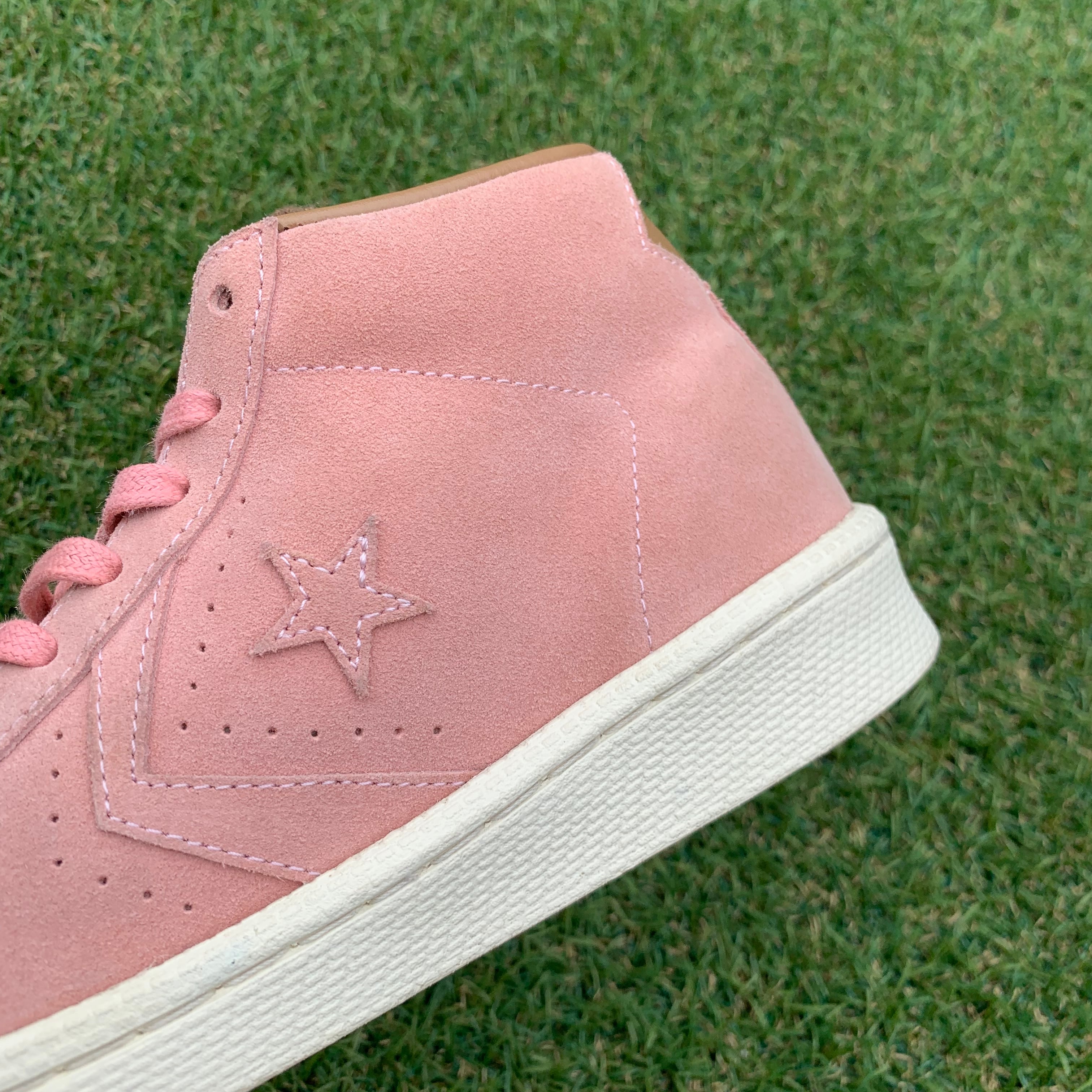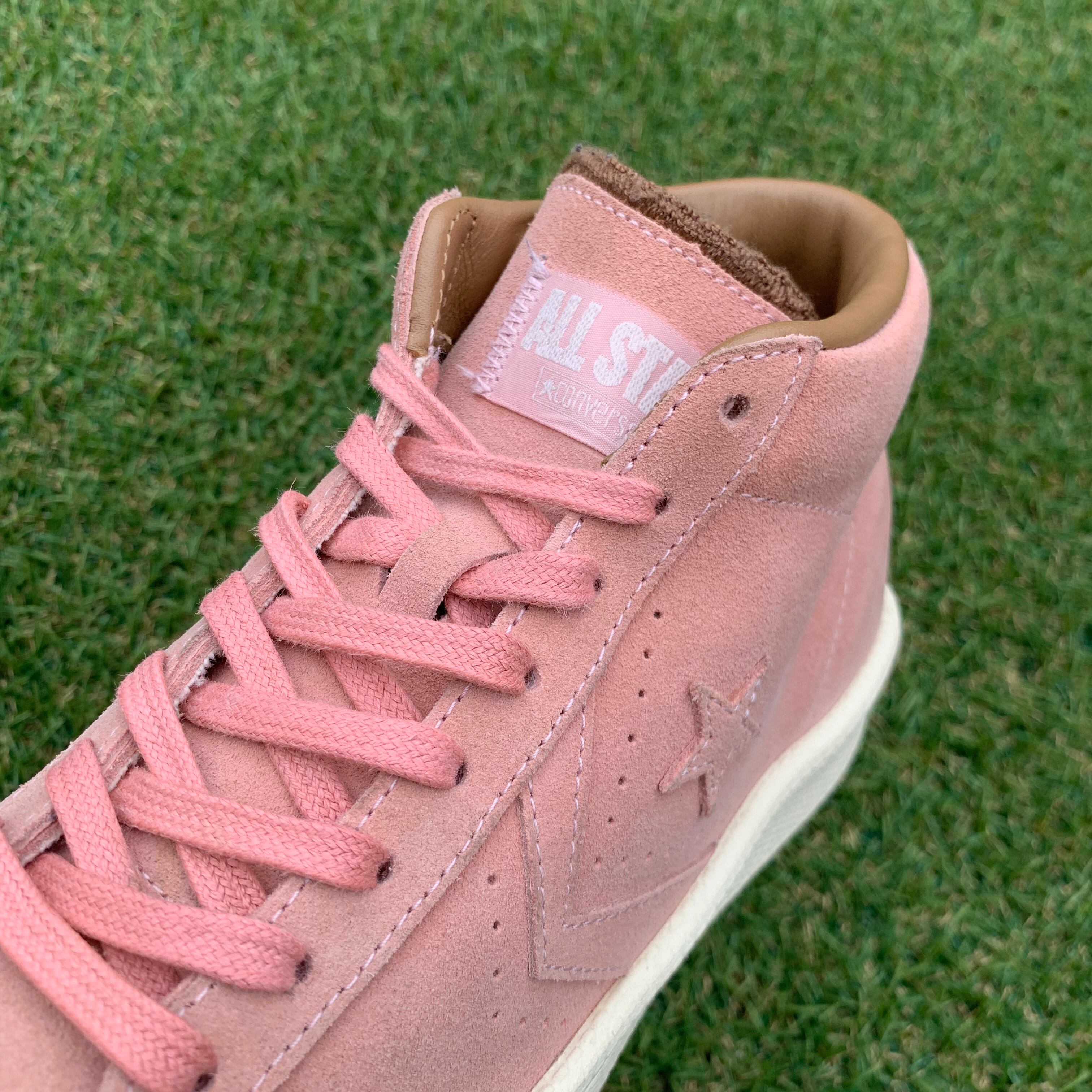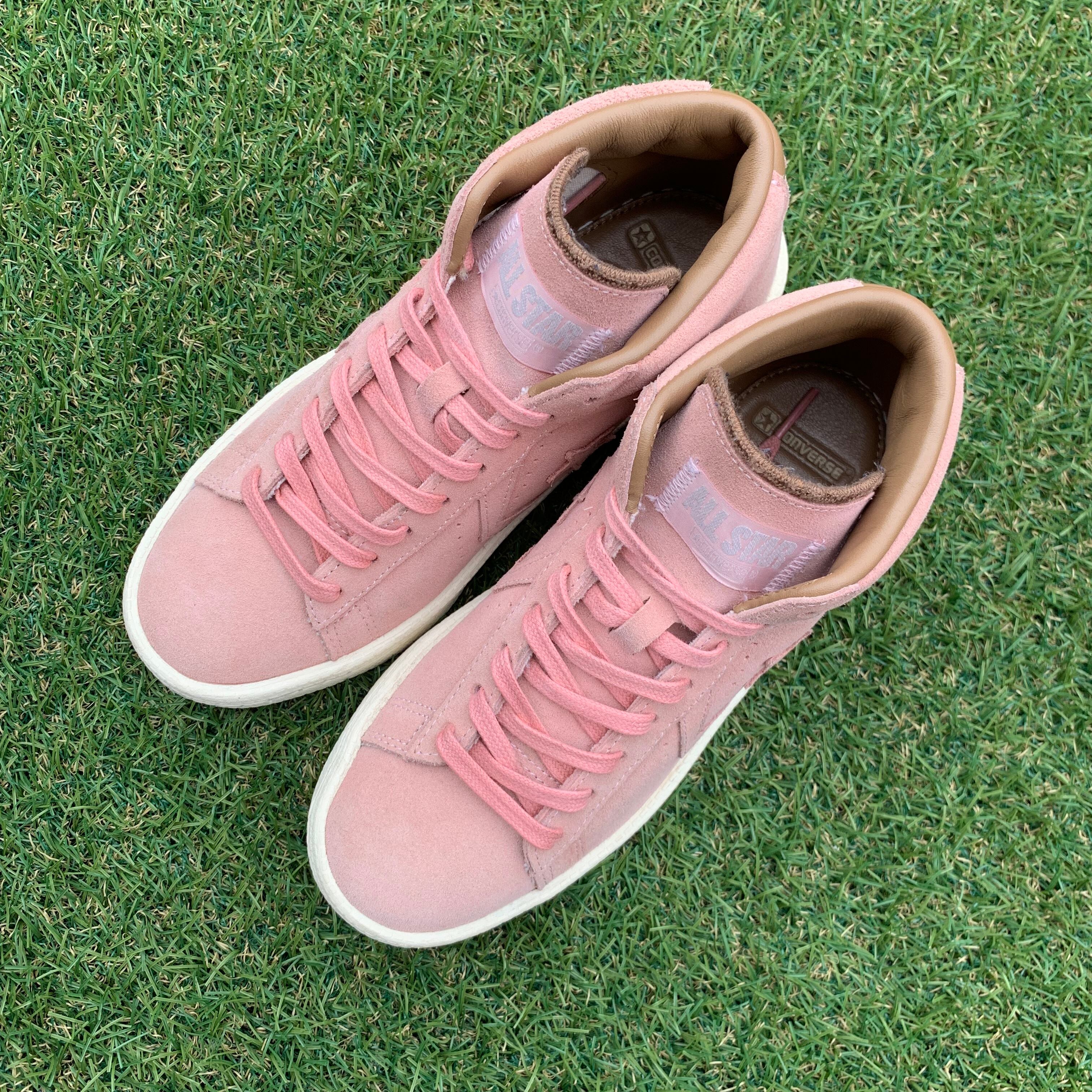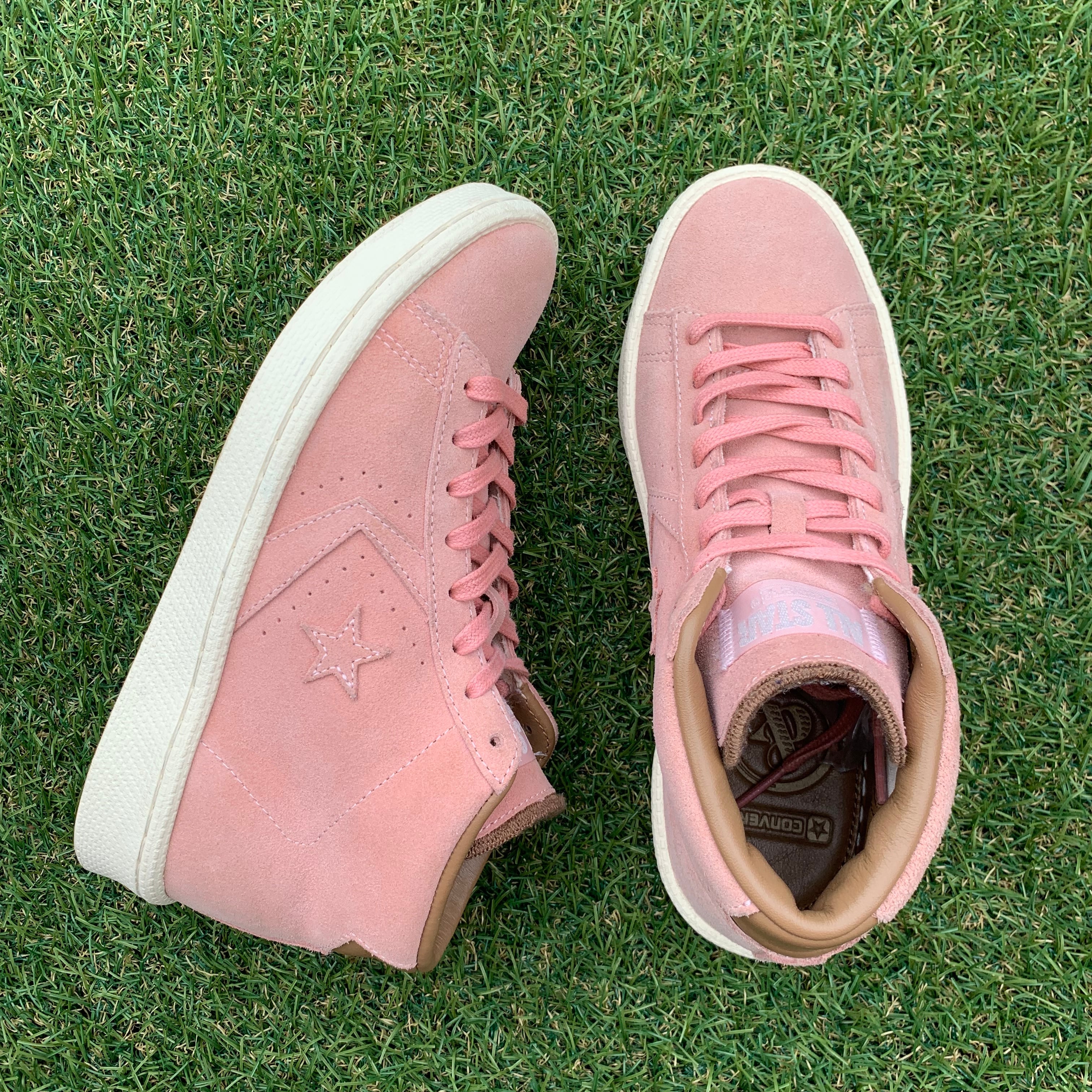 ミッドカットにスムースなスエード素材を採用し、淡いピンクでアッパーに採用しています。。インソールにはゴールドのロゴが刻印され、アッパーと同色のシューレースが統一感があります。