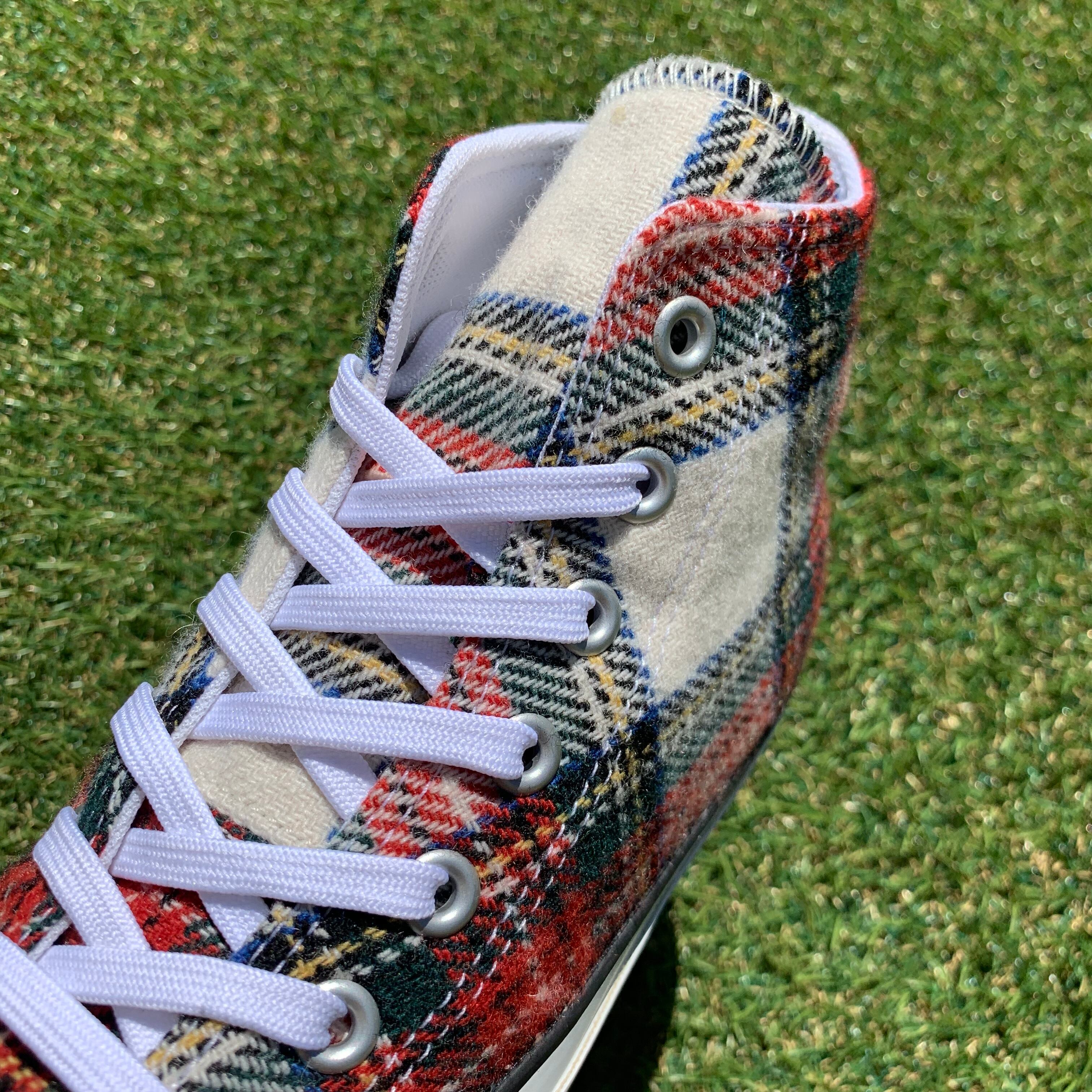 このモデルは、タータンチェックの起毛素材をアッパーに採用した一足です。