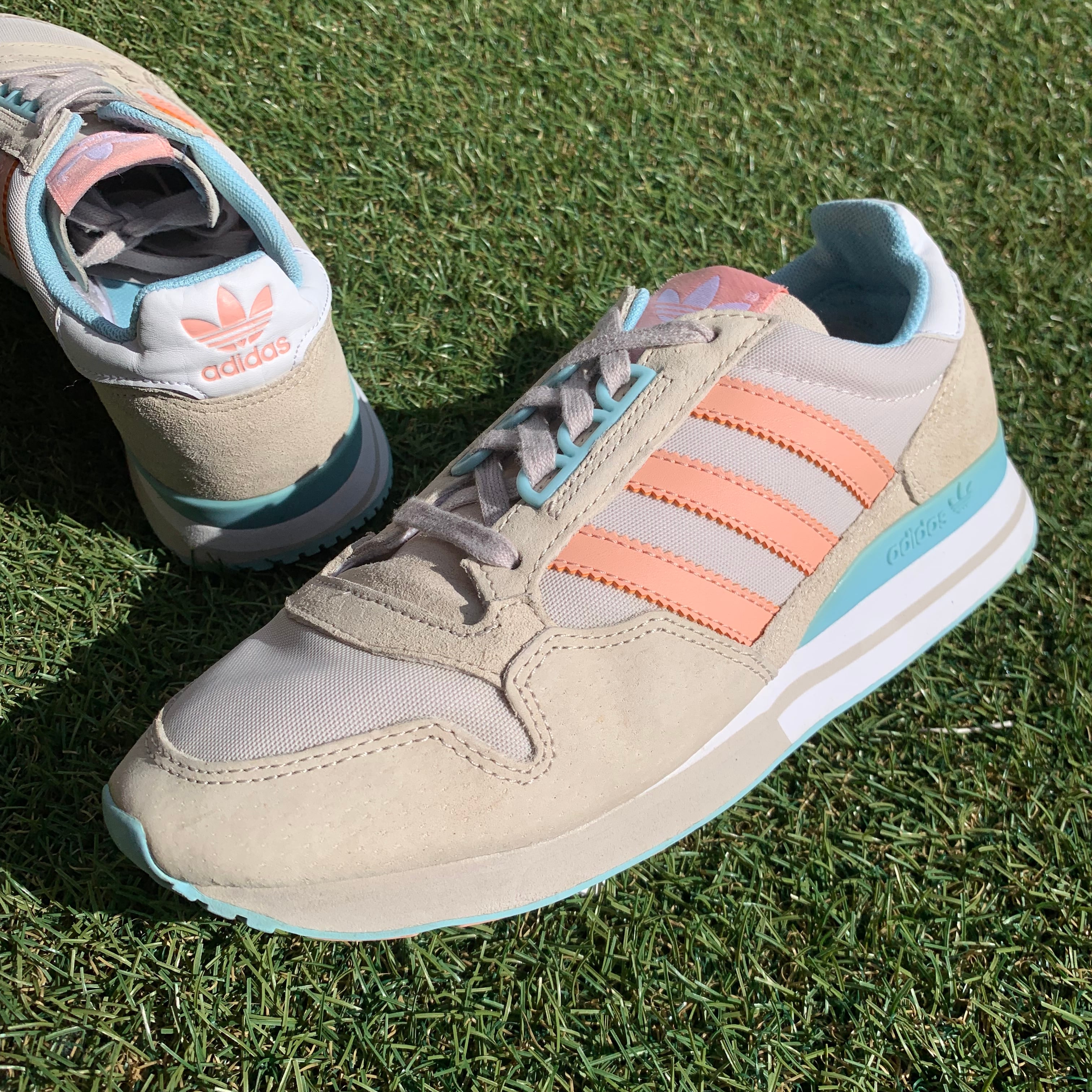 このモデルは、メッシュのアッパーに柔らかいピッグスキンのオーバーレイを用い、合皮のスリーストライプス、クラシカルなZXのアイステイをあしらい、EVA素材のミッドソール、軽くて履き心地の良いラバー製のフラットなアウトソールを採用しています。