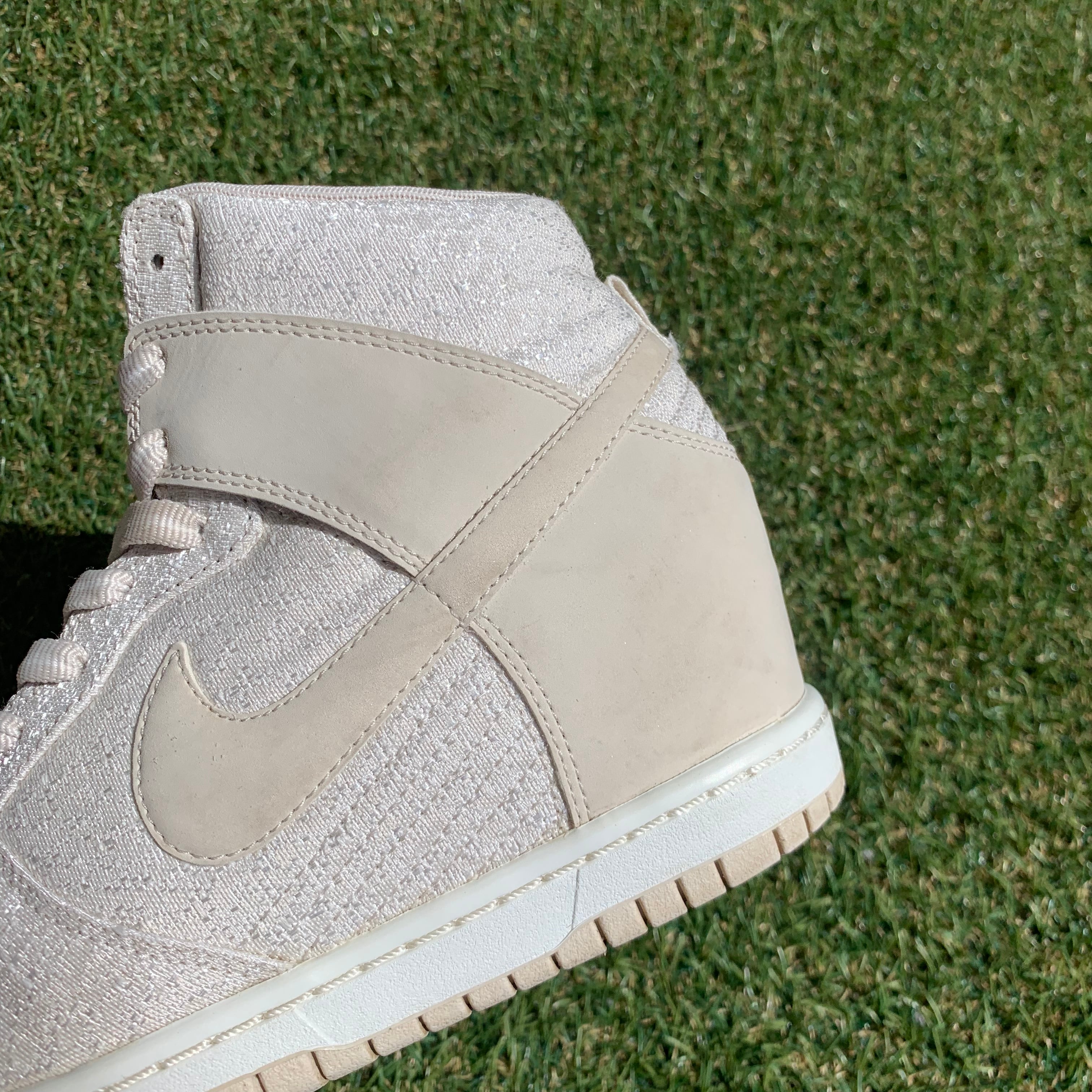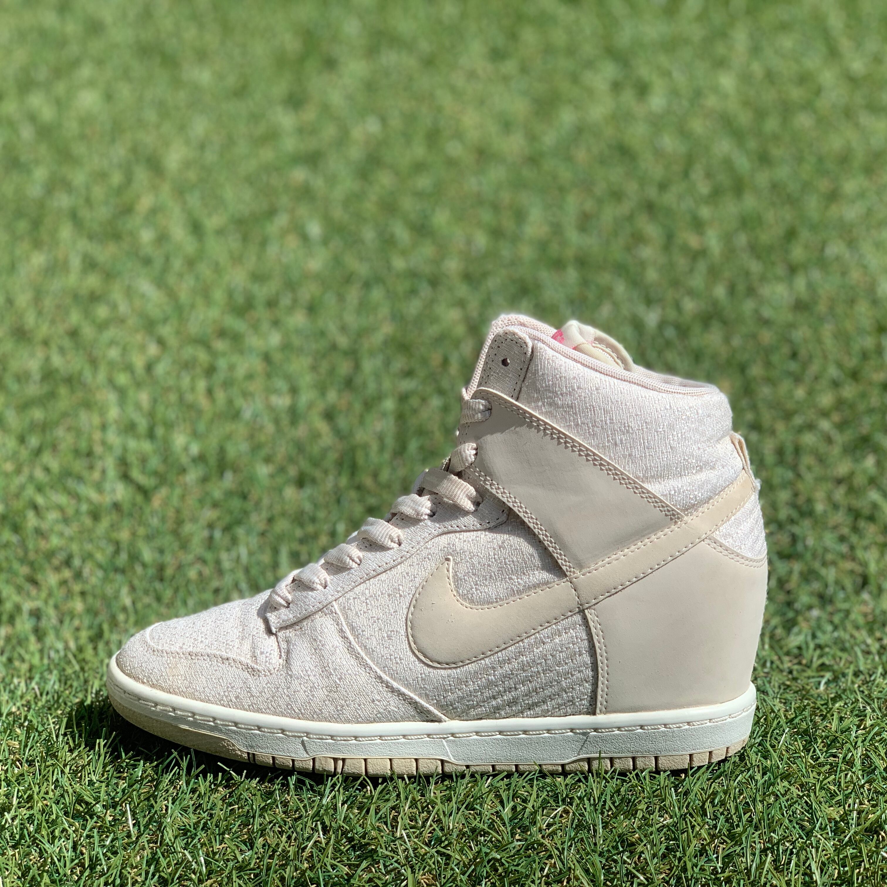 NIKEウィメンズスニーカーの新定番、DUNK SKY HIです。6.5cmのインヒールを搭載しながらも安定したホールド感と履き心地でベーシックなオフホワイトベースのカラーリングがどんなテイストのコーディネートやスタイルに対応します。