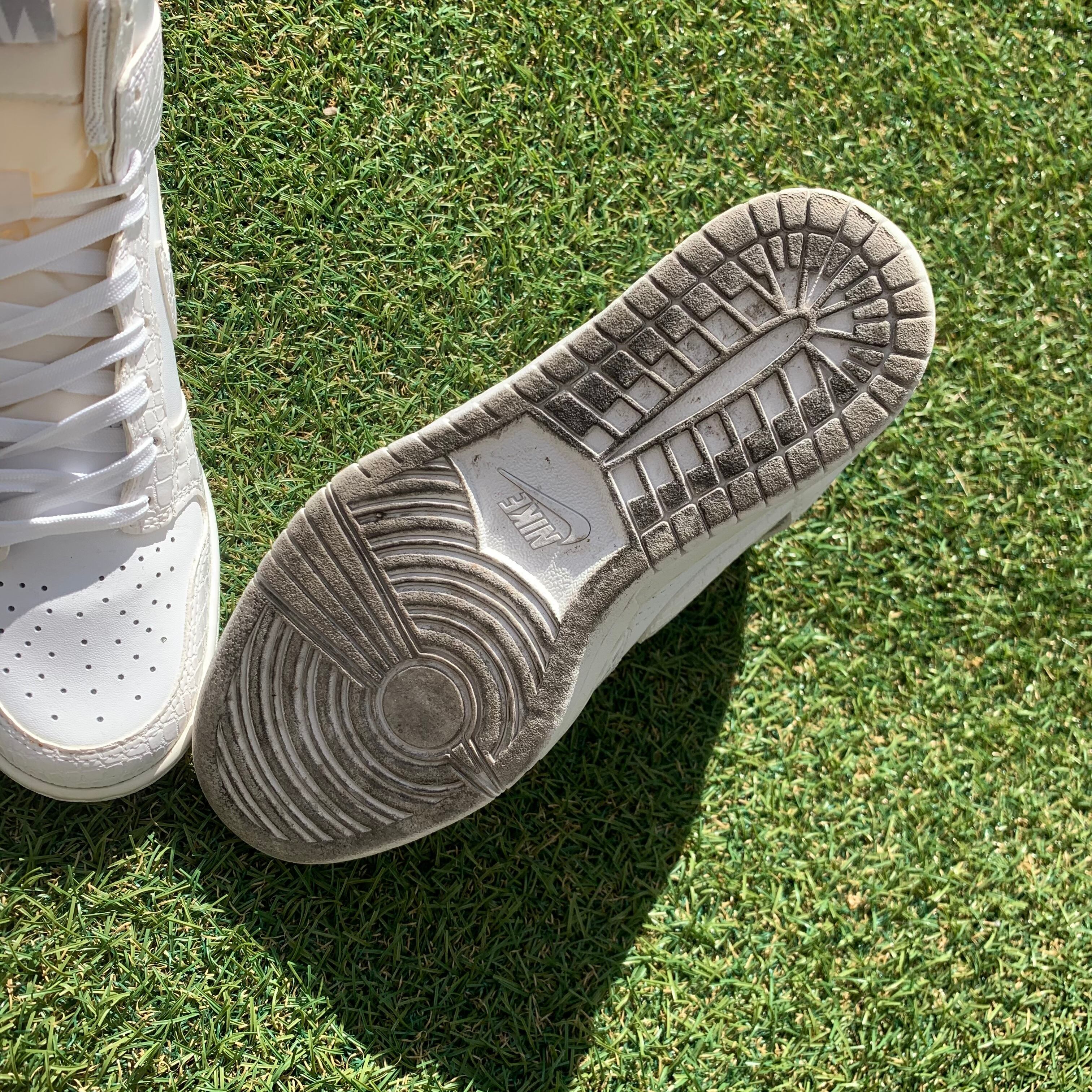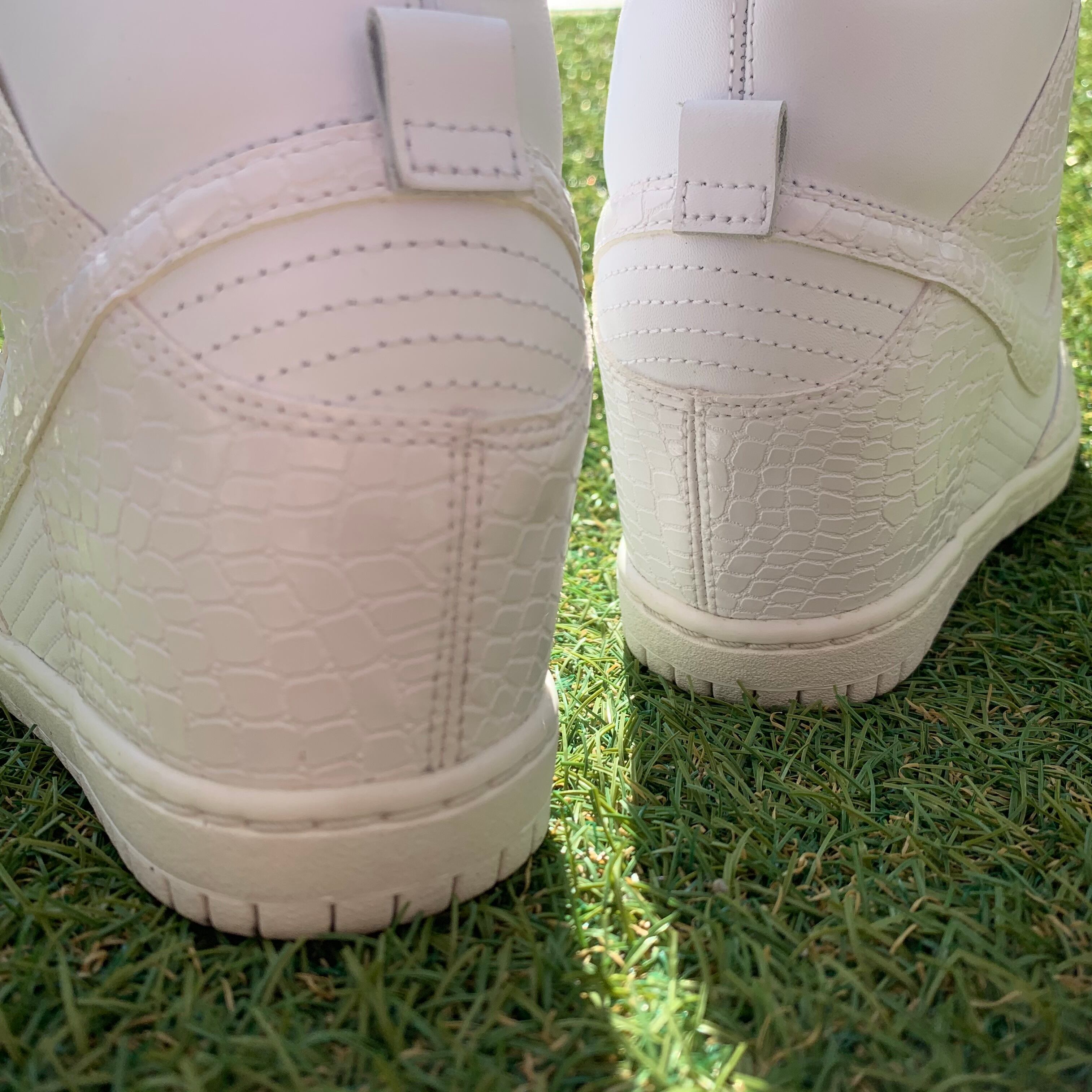 オールホワイトのカラーリングですが型押しレザーのと通常のレザーの組み合わせでラグジュアリーな雰囲気のある一足です!