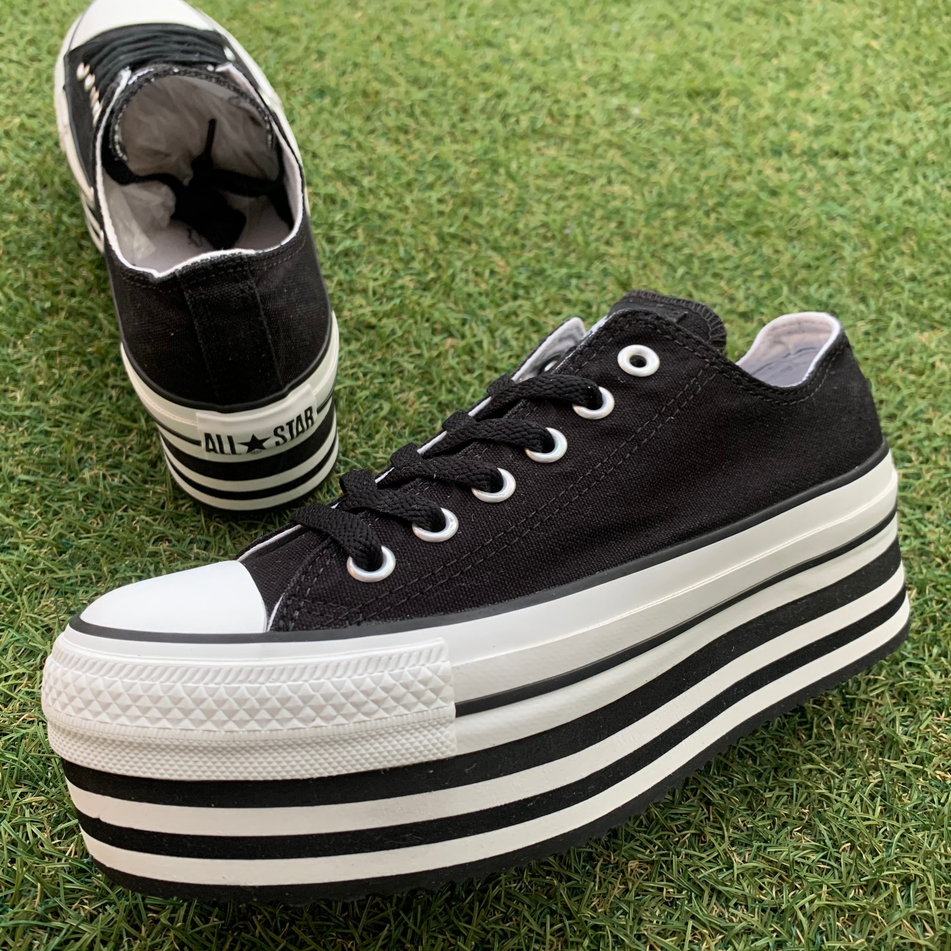 オールスターの定番モデルをプラットフォームシューズ(厚底靴)にアレンジしたガーリーなアイテムです。