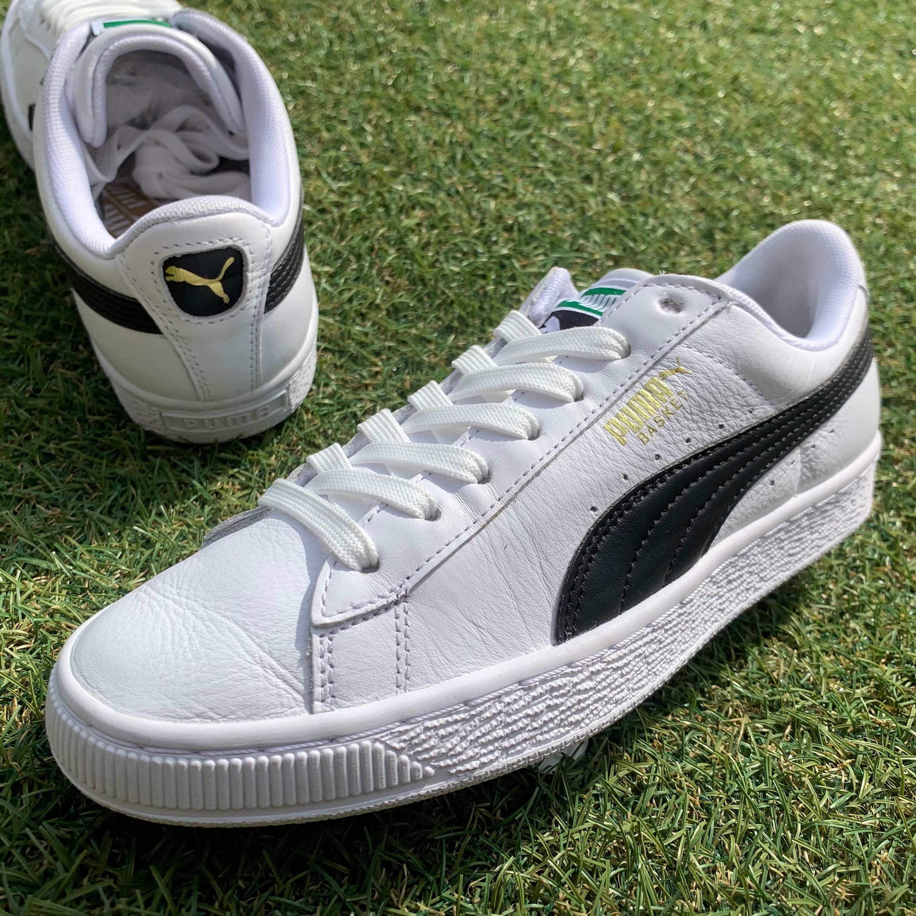 プーマを代表するライフスタイルシューズ、クライドのレザーバージョンとして1971年に登場したプーマバスケットです。