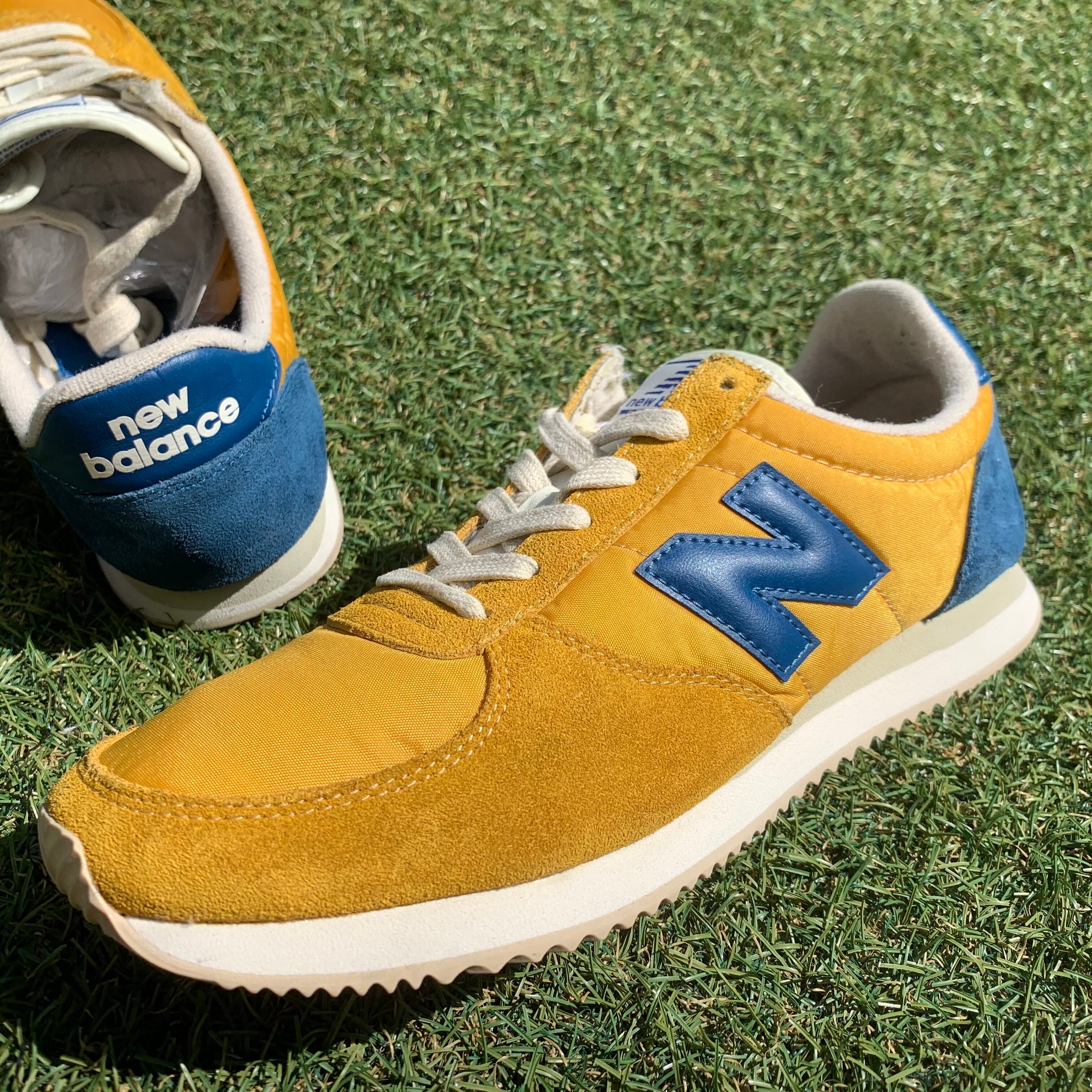 イエロー×ブルーがレトロな雰囲気の一足です。