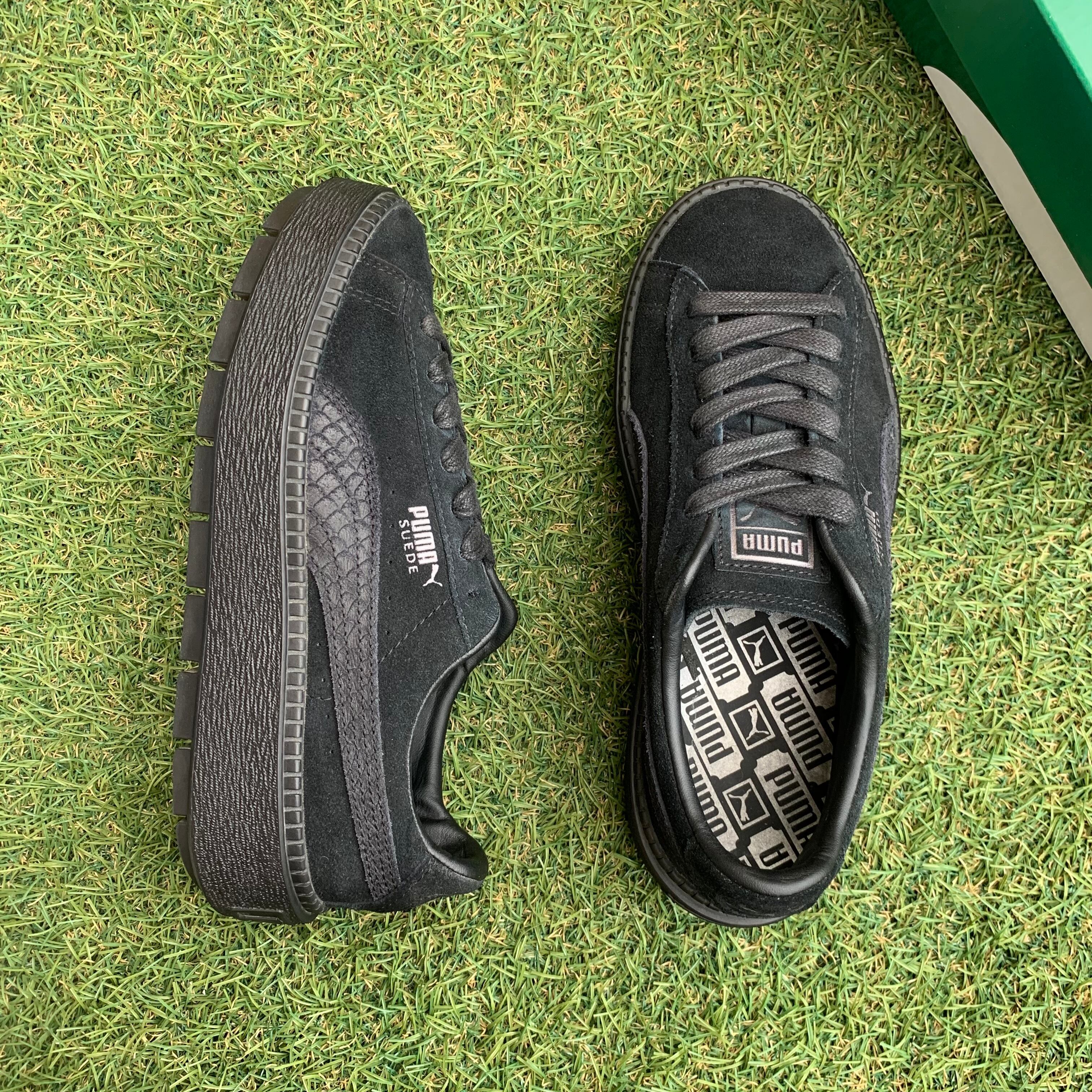 2017年のFenty by Rihannaコレクションで発表されたプラットフォームのデザインをベースに2018年シーズンでカスケードダウンし、シンプルなアッパーデザイン、カラーを採用しています。