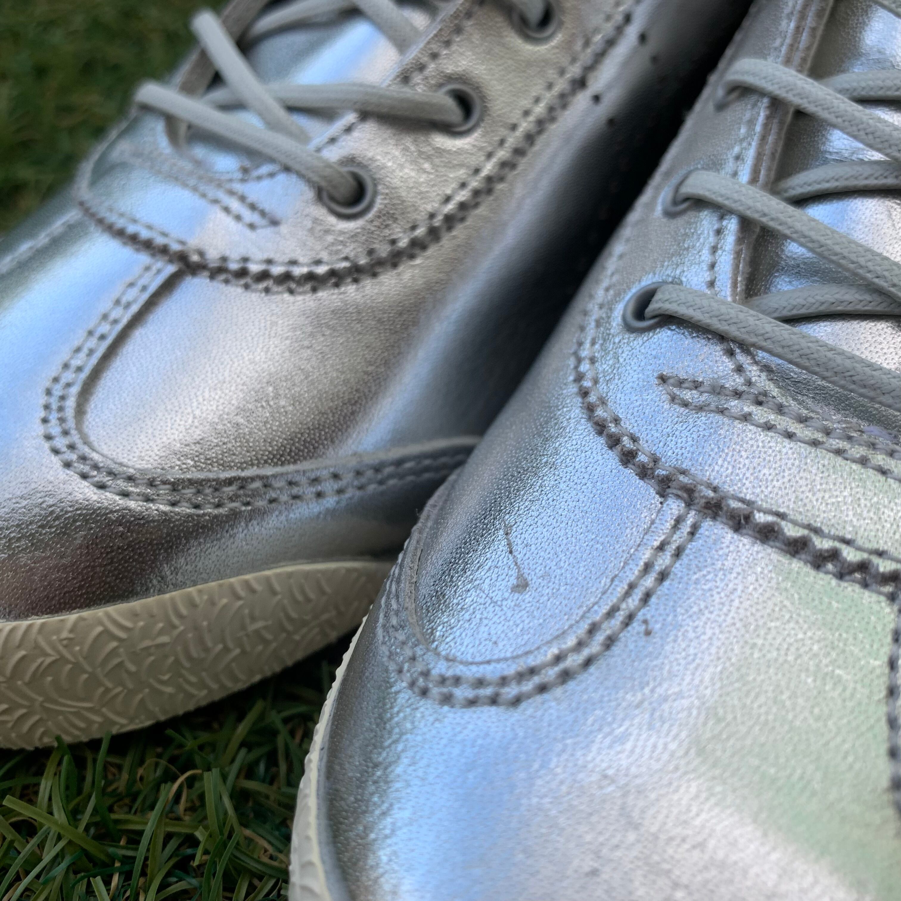 左足トゥー付近に製造時についたと見られる汚れが見られます。