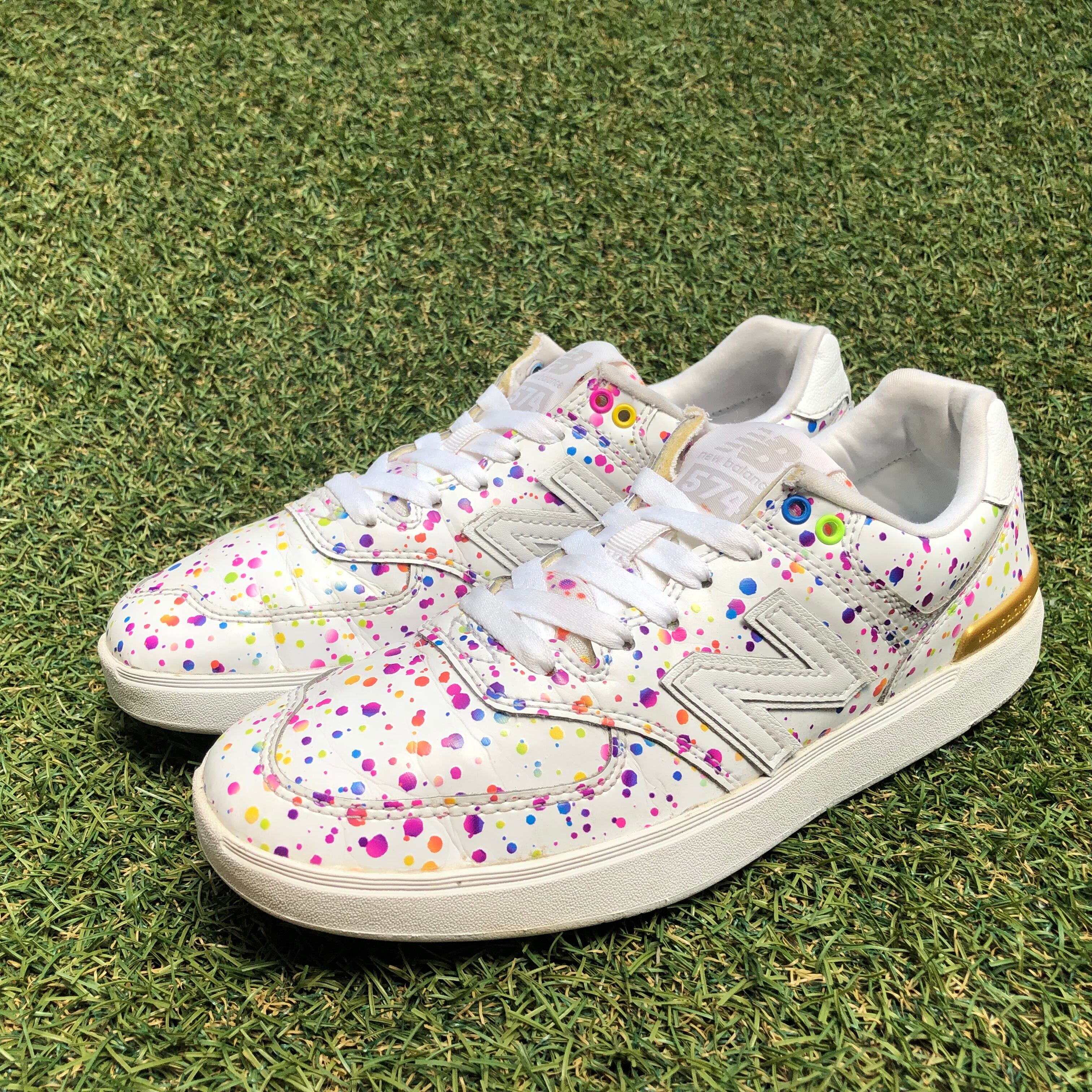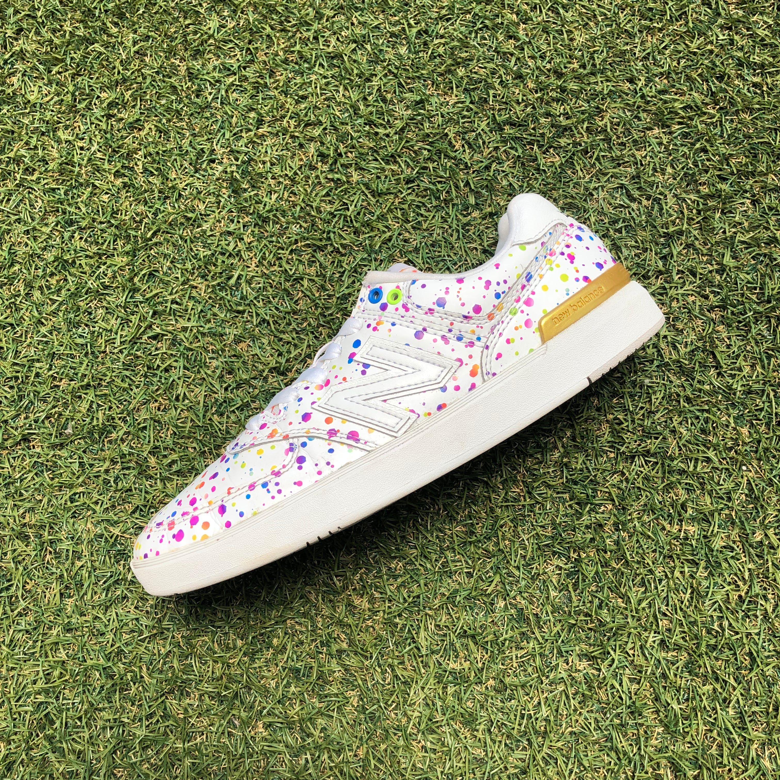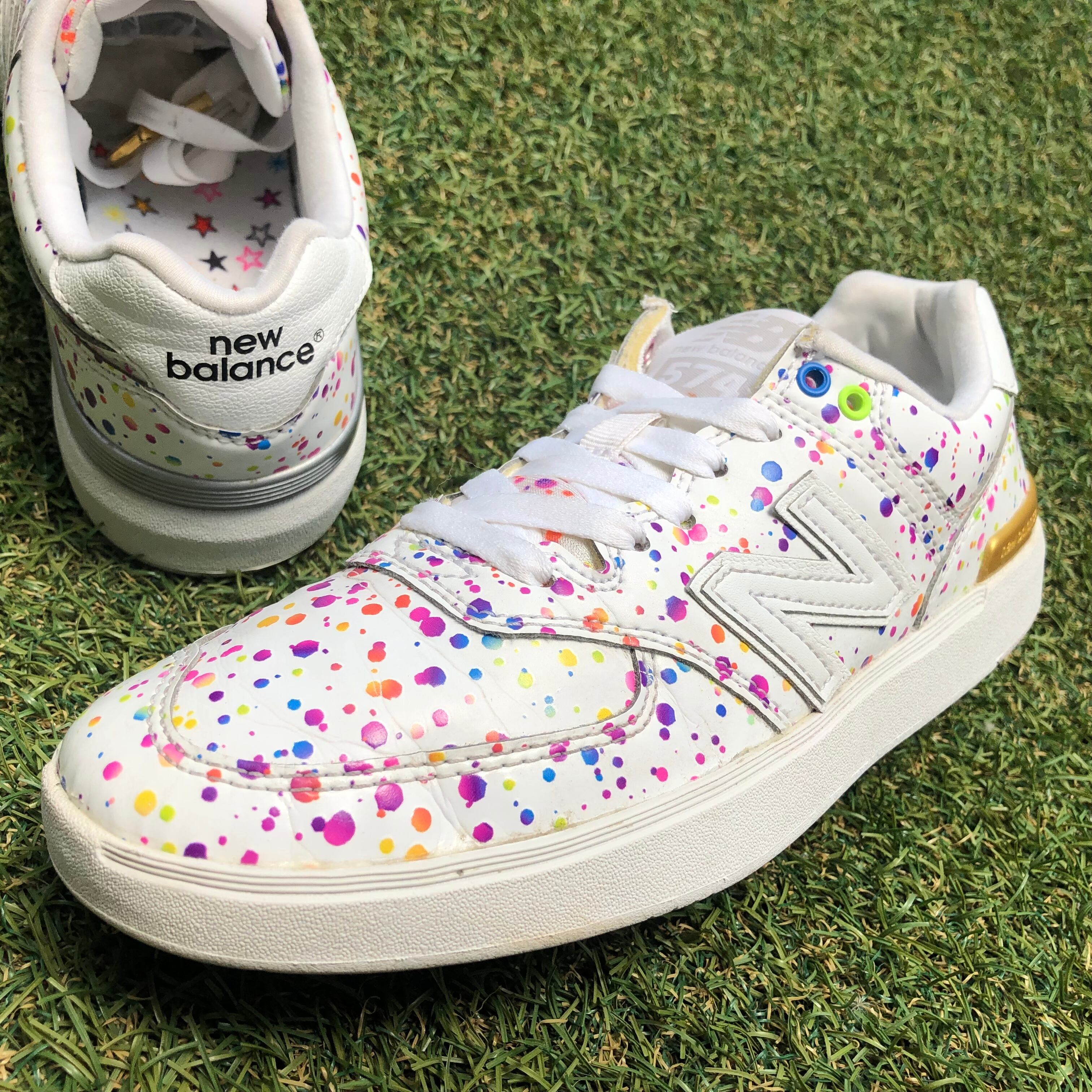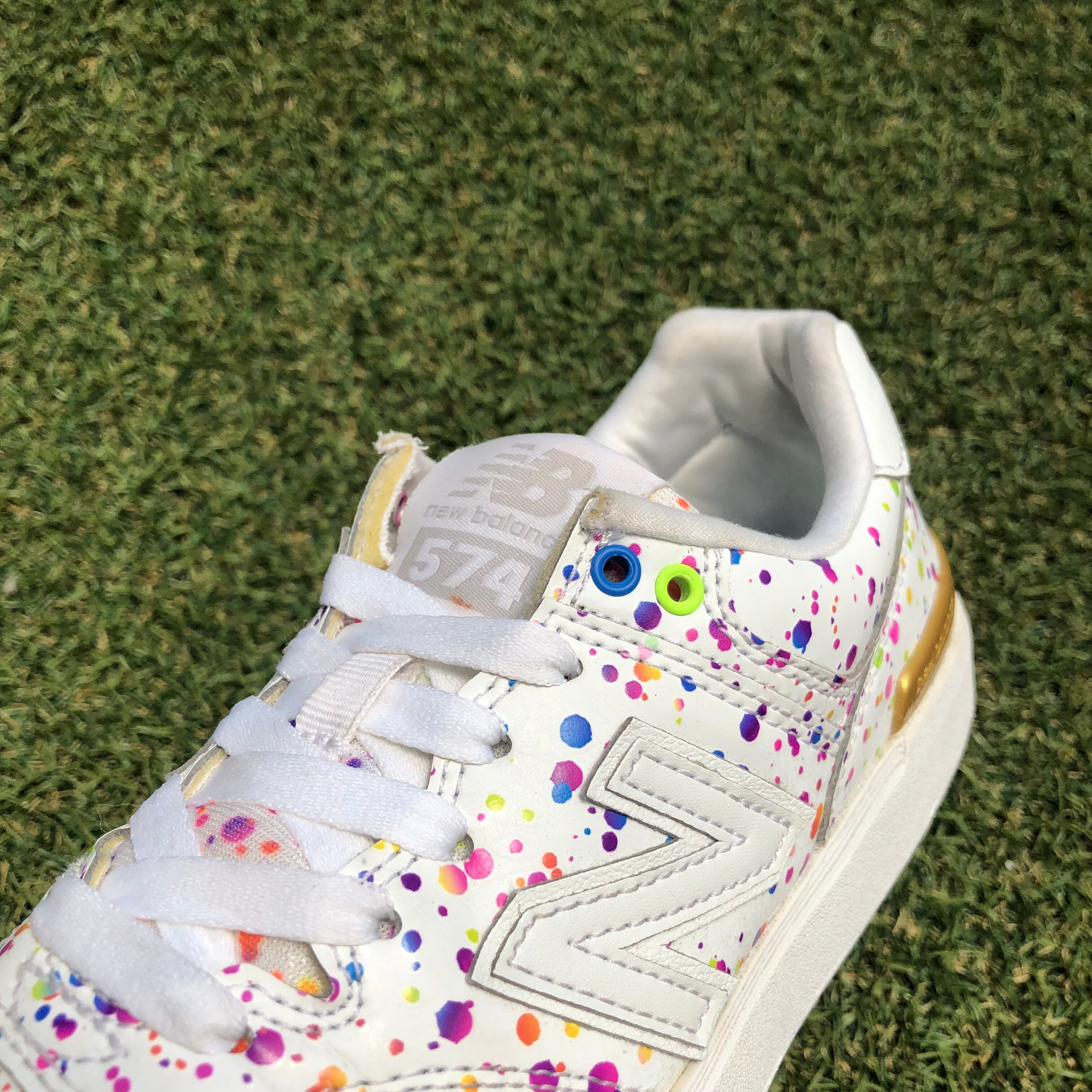 花火をテーマに華やかにデザインされていて、ホワイトアッパーに散りばめられたカラフルなインク、シルバーとゴールドで左右アシンメトリーになった踵部分がポイントです!