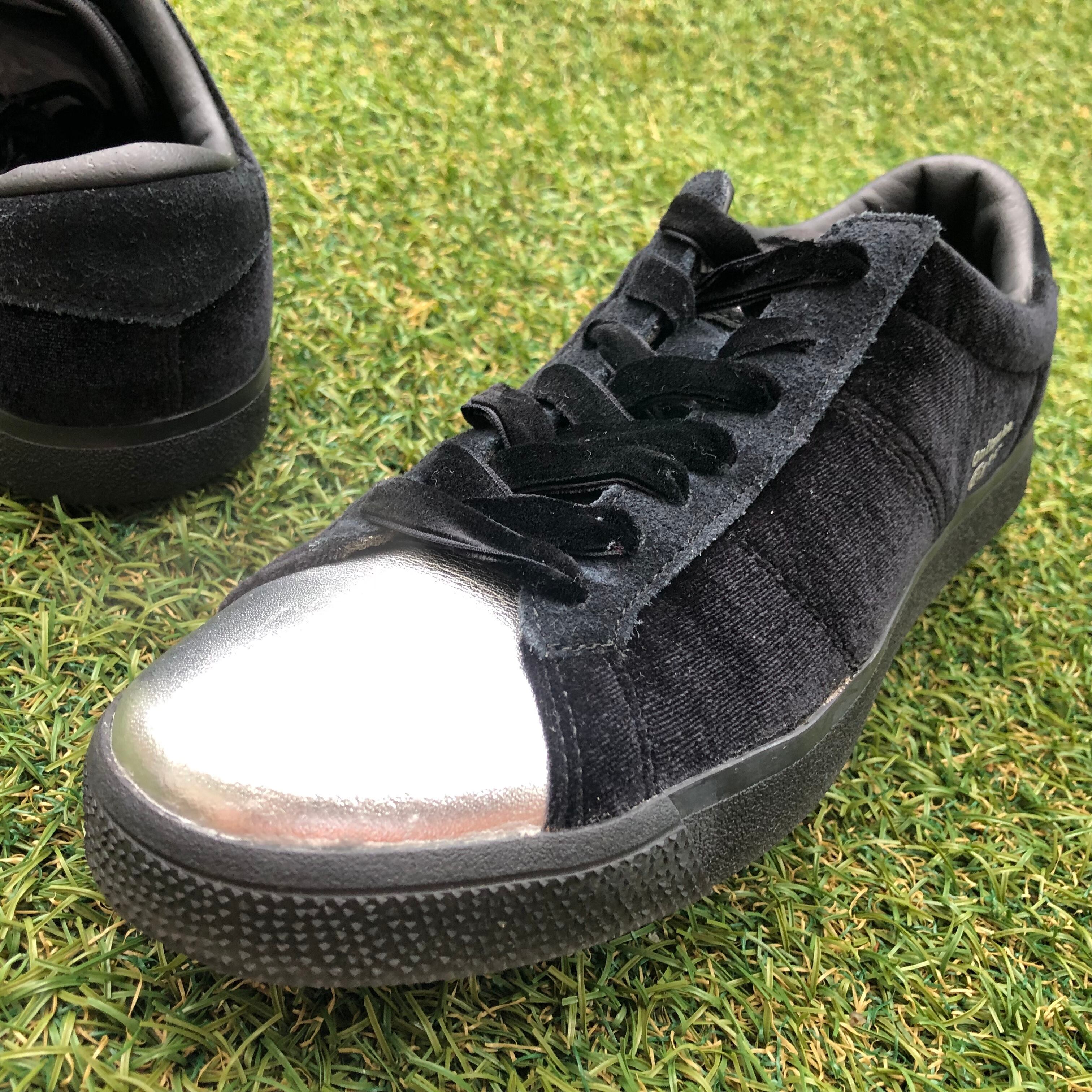ブラックのベルベットにシルバーのトゥーがラグジュアリーな一足です!