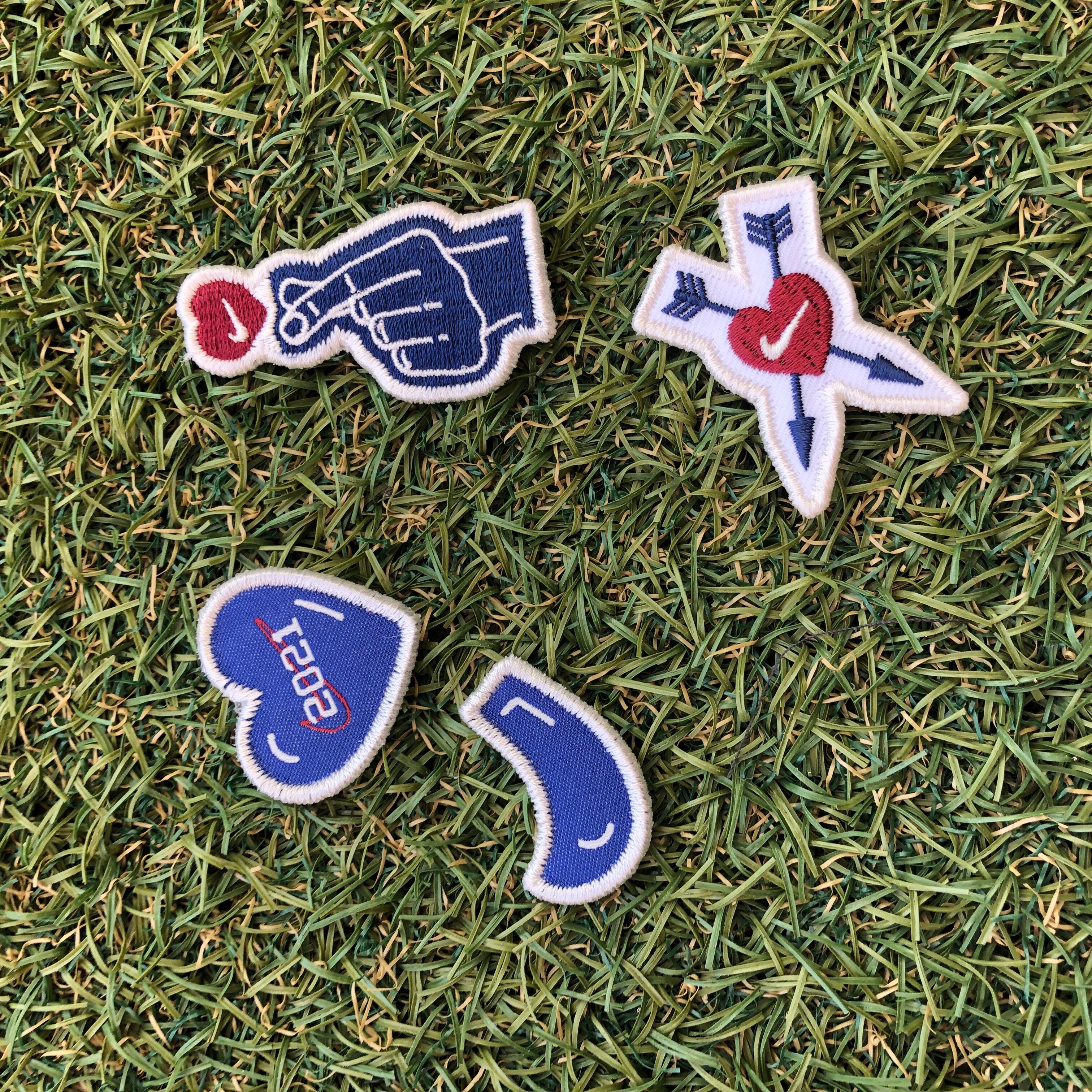 ビンテージスタイルに仕上げたモデルにSNSで流行した指を交差してハートマークを作る仕草のパッチなどをパックにしたモデルです!