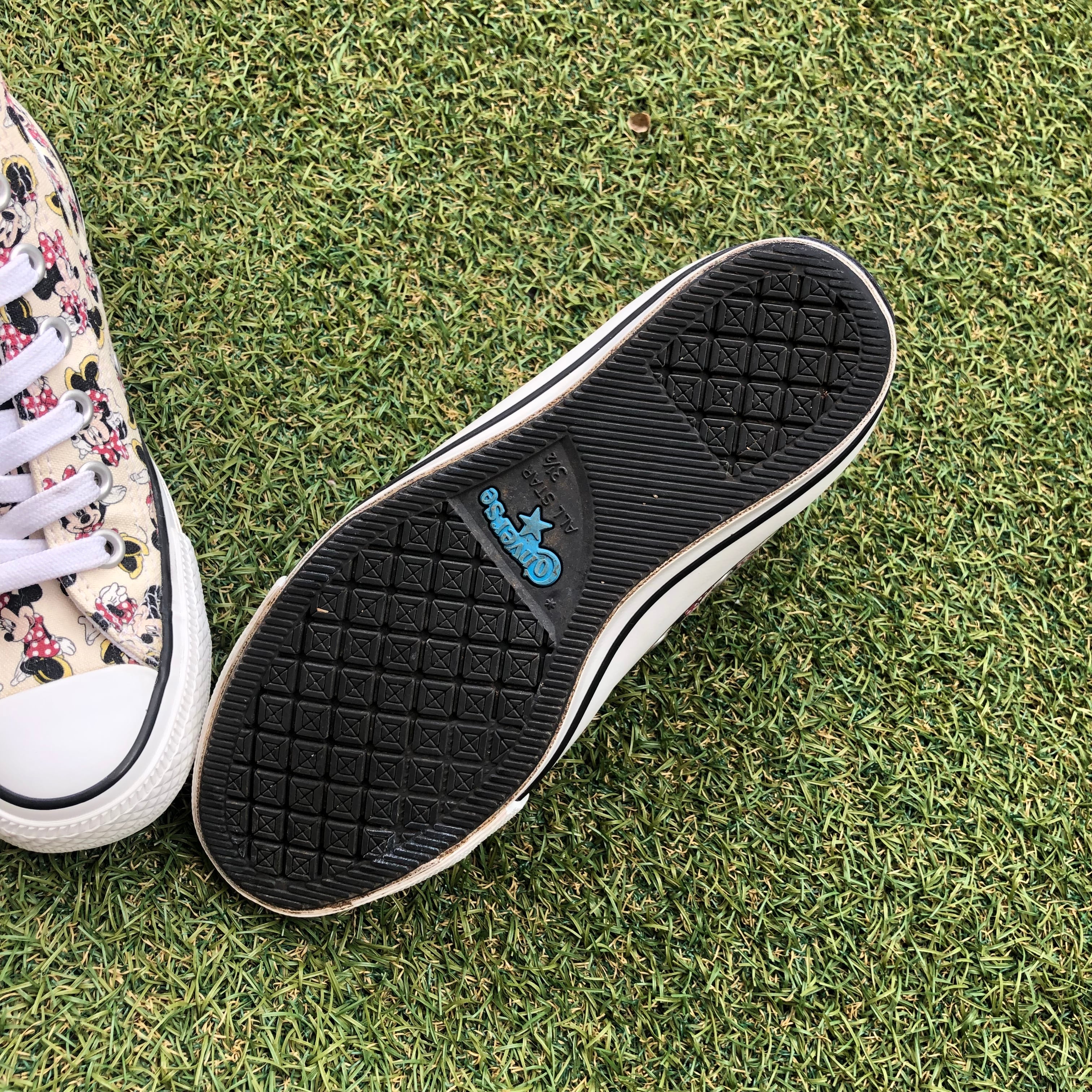 このモデルは、ディズニーとのコラボモデルで、クリーム色のアッパーをベースに、さまざまなポーズをしたミニーマウスを全面にあしらっています。
