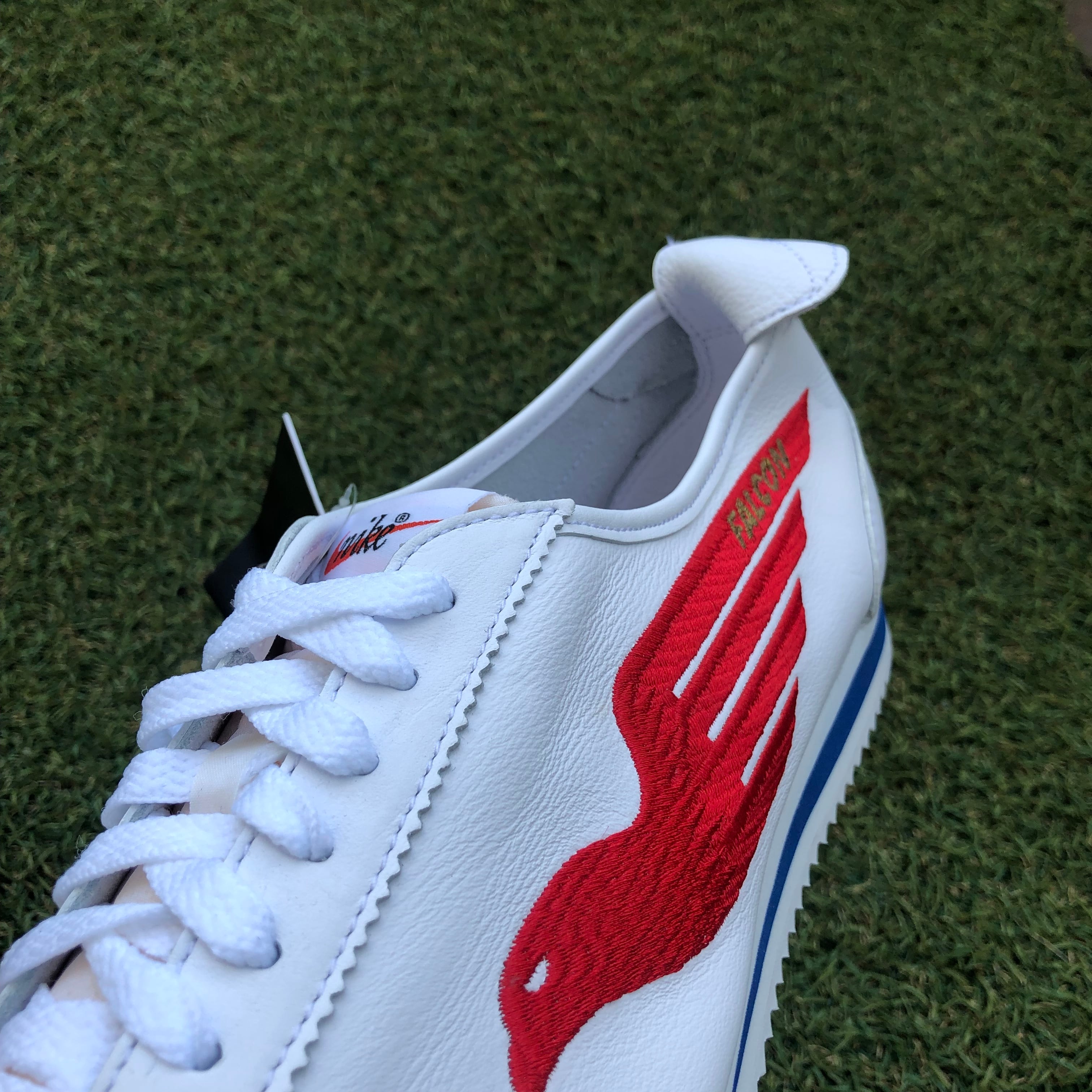 このモデルは、SHOE DOGをオマージュしたアイテム。プーマに対抗した"FALCON"が刺繍されたデザインを採用した一足!