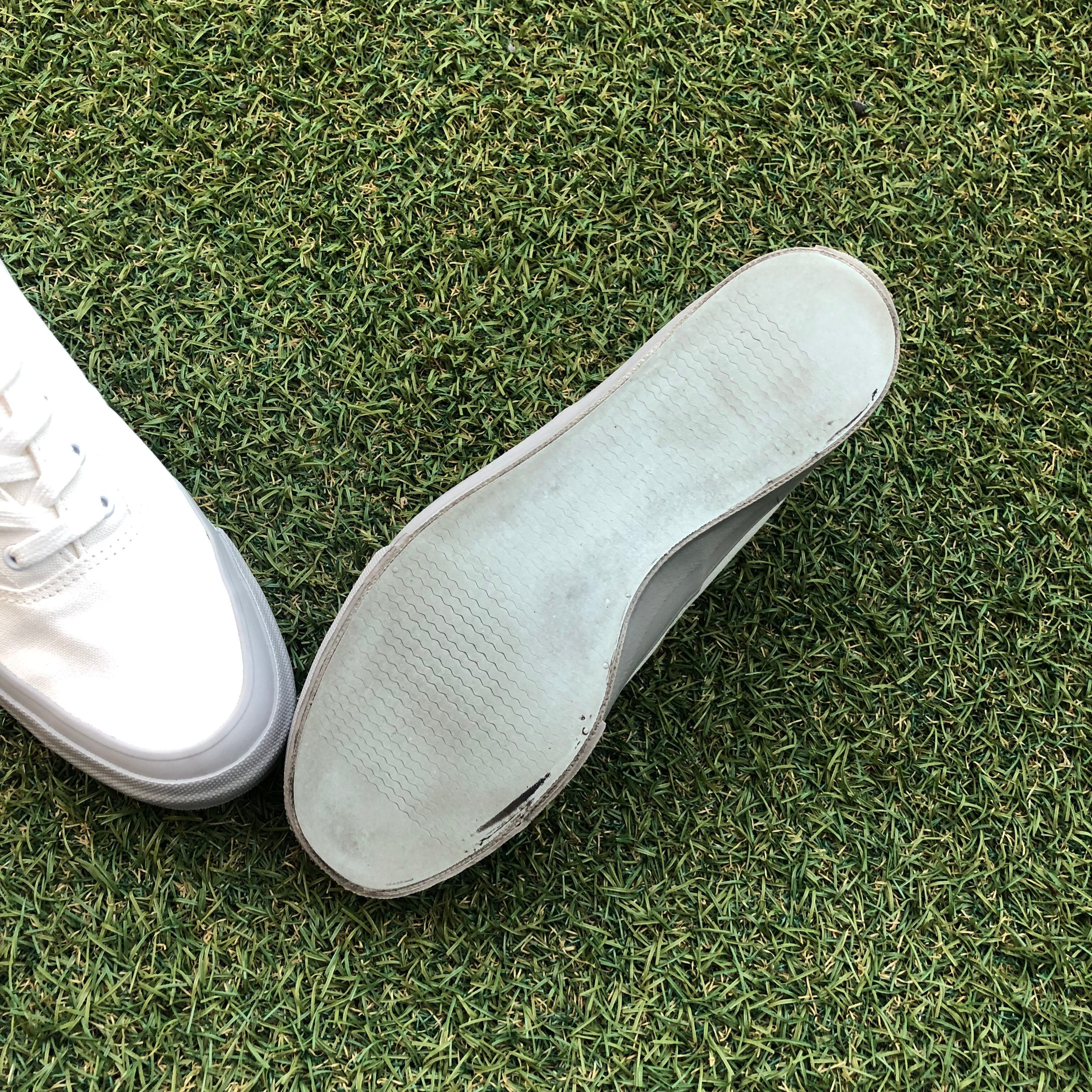 キャンバス地のアッパーに、ゴムのソールを120度近い熱と圧力と加えることで化学反応を起こすバルカナイズド製法を採用しています!